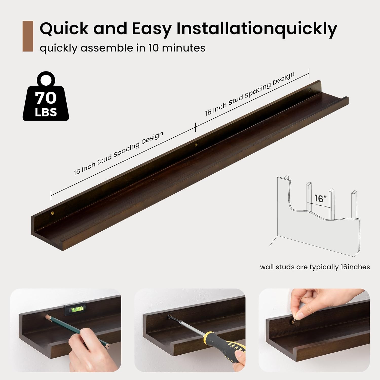 • Chic Minimalist Design: Solid pine wood picture ledge shelves available in multiple colors and sizes, these picture shelves complement any decor, from modern to farmhouse. Use them alone or in a gallery-style arrangement to create a stylish focal point