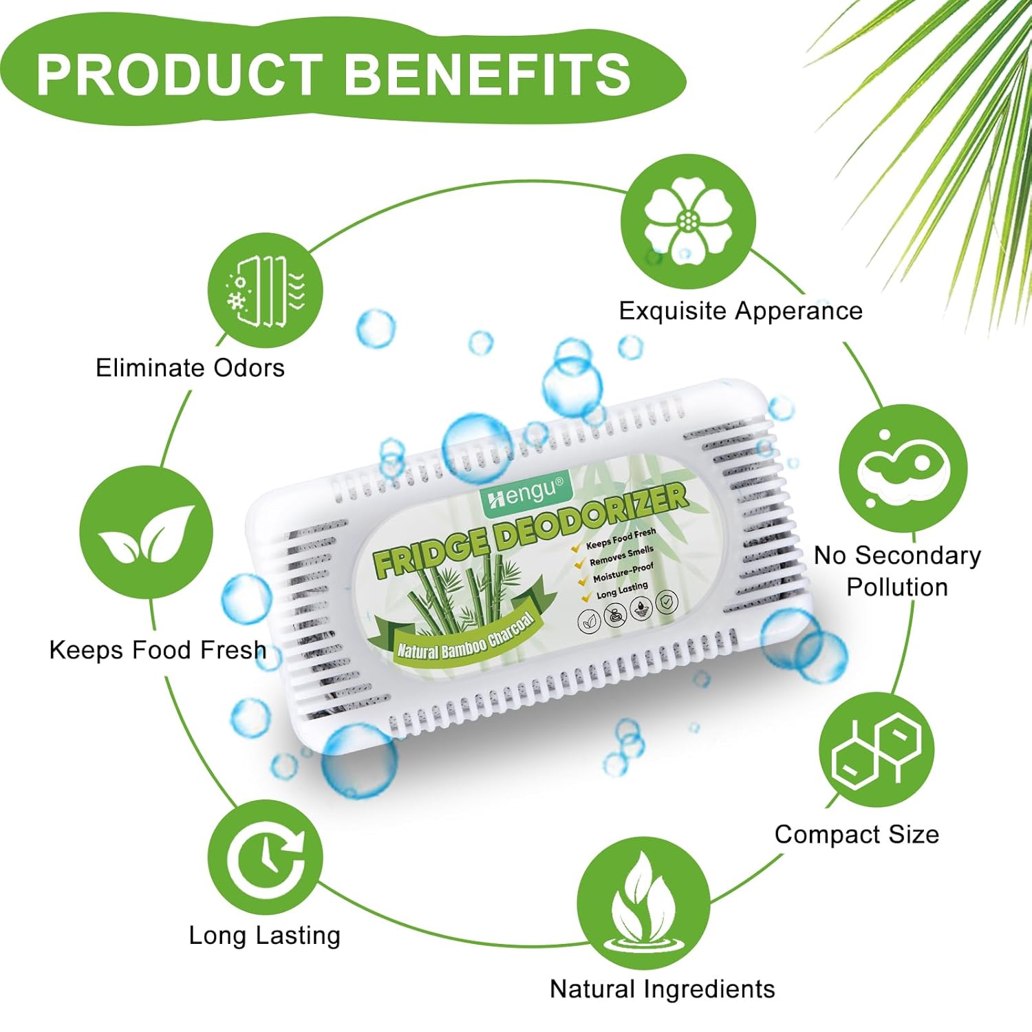 Hengu Fridge Deodorizer, (6 Pack) Fridge Odor Eliminator Natural Activated Charcoal More Effective Fridge Deodorizer Odor Eliminator Than Baking Soda, Smell Eliminator for Refrigerator & Freezer
