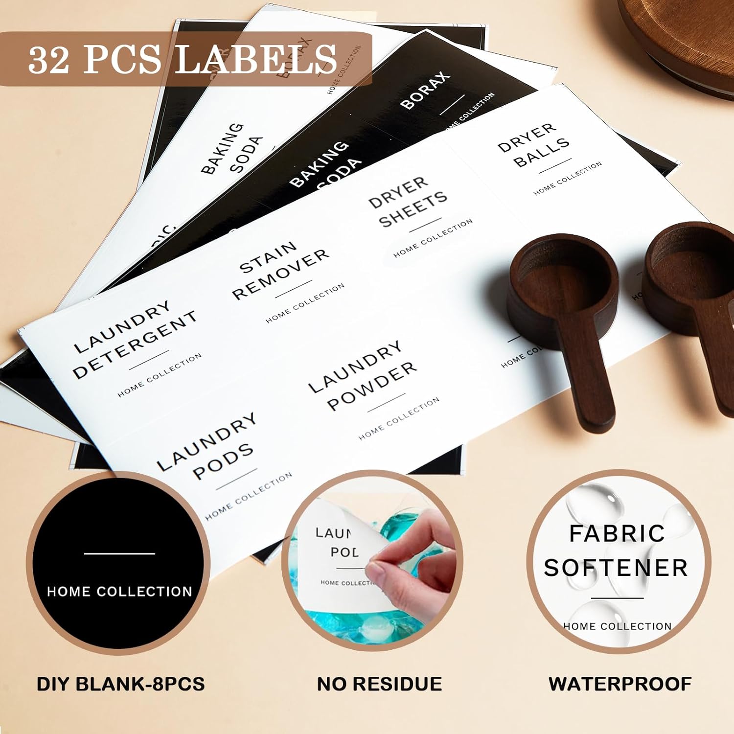 • Complete laundry containers set: It features 2 airtight 70oz capacity laundry jars and 2 gorgeous acacia scoops, which offers a lovely solution for storing laundry powder, pods, scent booster beads, dryer sheets and dryer balls. It eliminates the need for bulky plastic laundry detergent bottles and can really elevate and modernize any space!
