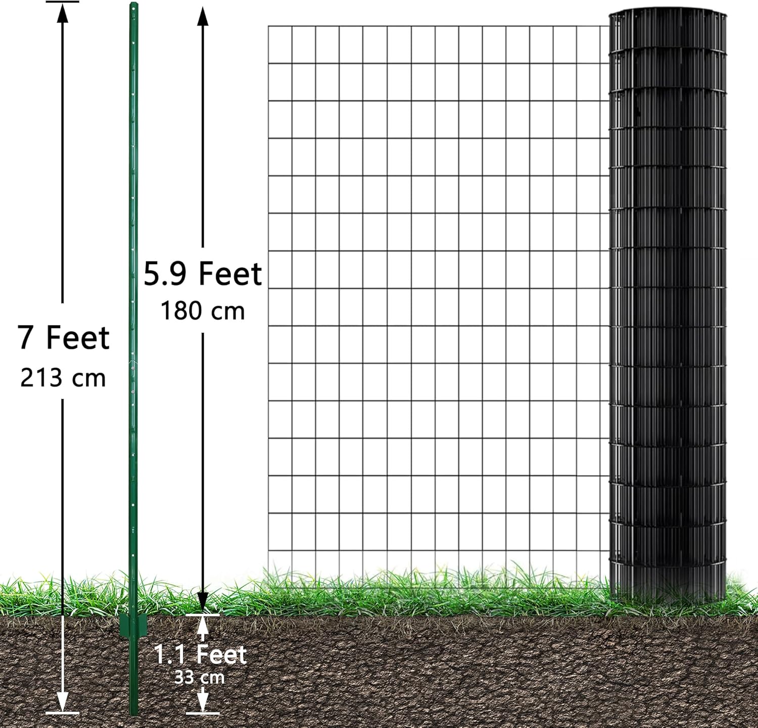 • 【SIZE】Pack of 10.This fence post is composed of two sections. One section measures 4 ft and the other is 3 ft. When installing, please first insert the 4 - ft section into the ground for fixation. After that, use screws to securely attach the 3 - ft section on top. This two - part design not only ensures easy installation but also provides enhanced stability for various fencing needs. The height of each fence post is 7 ft in total, of which 1 ft is buried underground, perfectly suitable for 6 ft welded wire, hardware cloth, steel wire, ropes, and other utility fence applications.