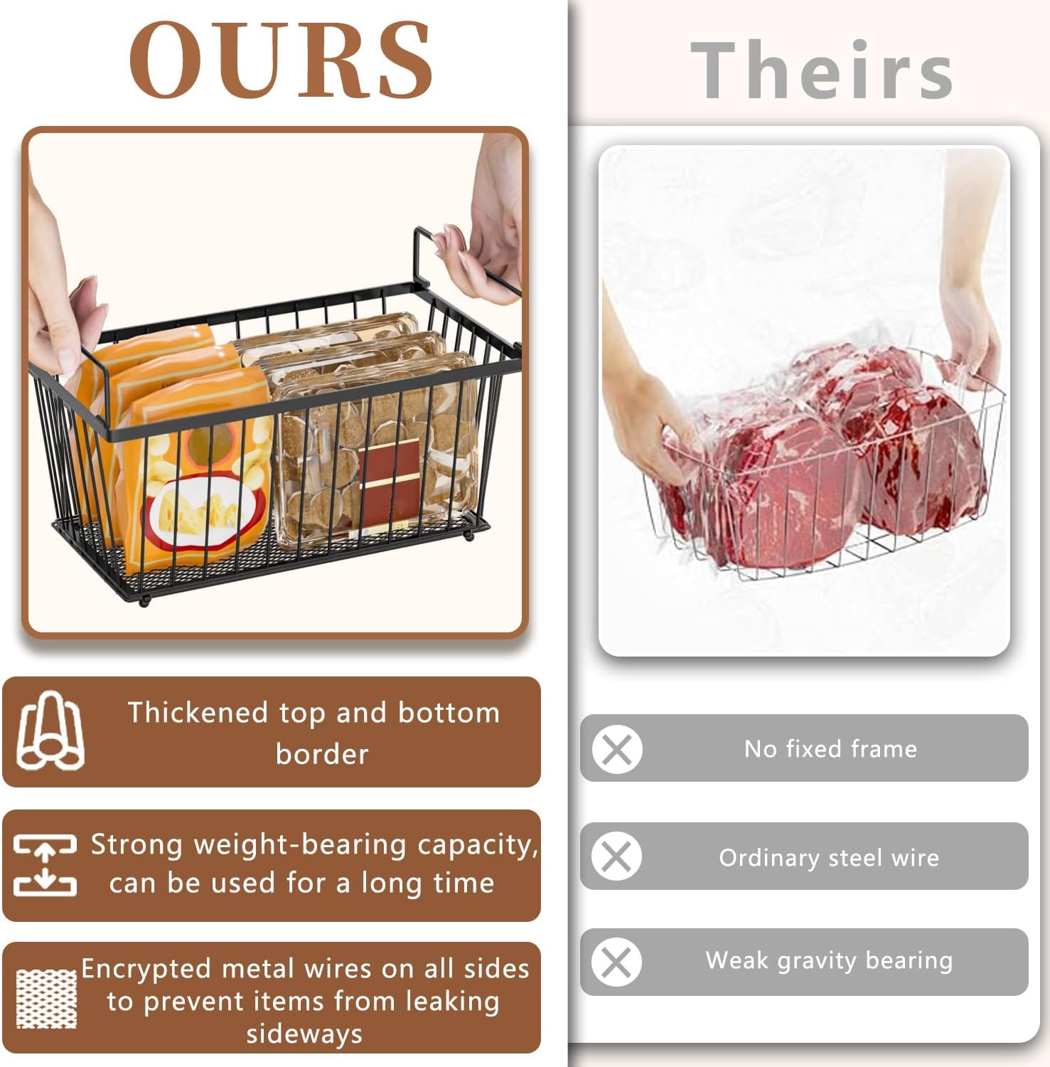 • Thickened Frame and Four-Sided Metal Mesh: Our chest freezer organizer bins are made of high-quality metal, with reinforced and thickened upper and lower frames and dense metal mesh design on all four sides, providing stronger load-bearing capacity and resistance to deformation. Therefore, this chest freezer organizer is more durable compared to regular models.