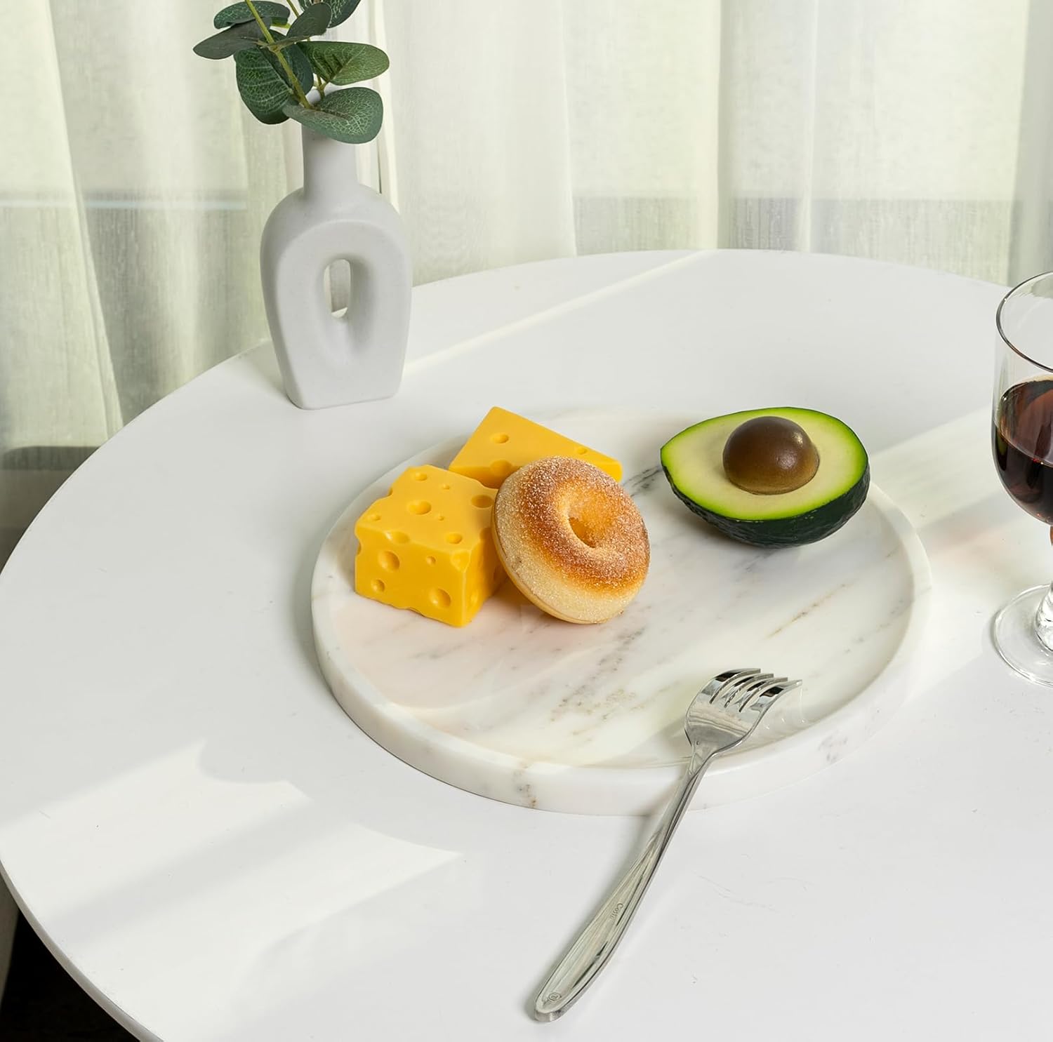 • Suitable Size: Our small round marble tray measures D9.8”x H0.7”. This bathroom counter tray fits bathroom washstands, kitchen counters, coffee tables, bedroom dressers, vanity tops, and bedside tables—ideal for organizing and enhancing your space