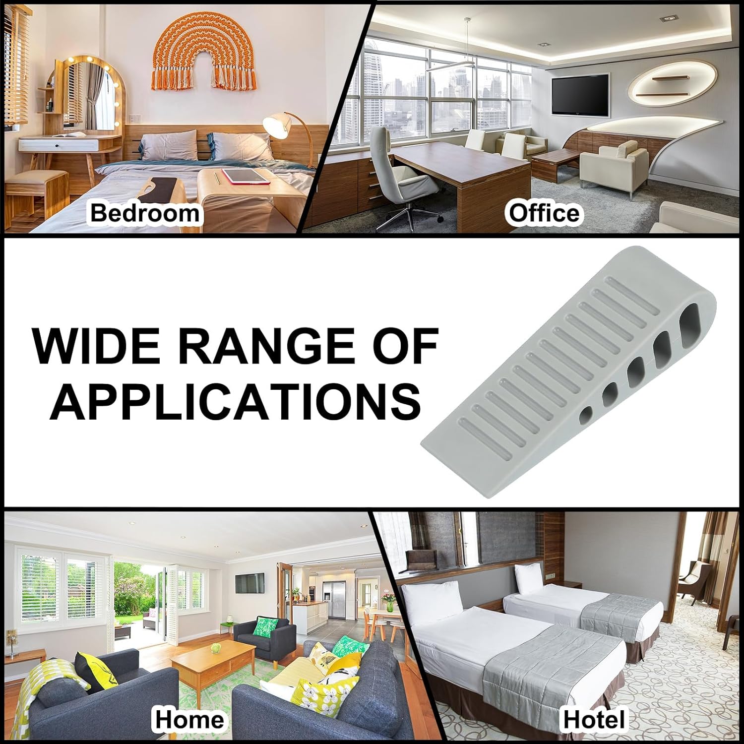 • Sturdy Rubber: The door stop wedges are crafted from TPR material, ensuring reliability, reusability, and non-slip. Suppleness structure with scientific arched holes, effectively preventing doors from closing due to a breeze and helping prevent cats and dogs from accidentally pushing the door closed.