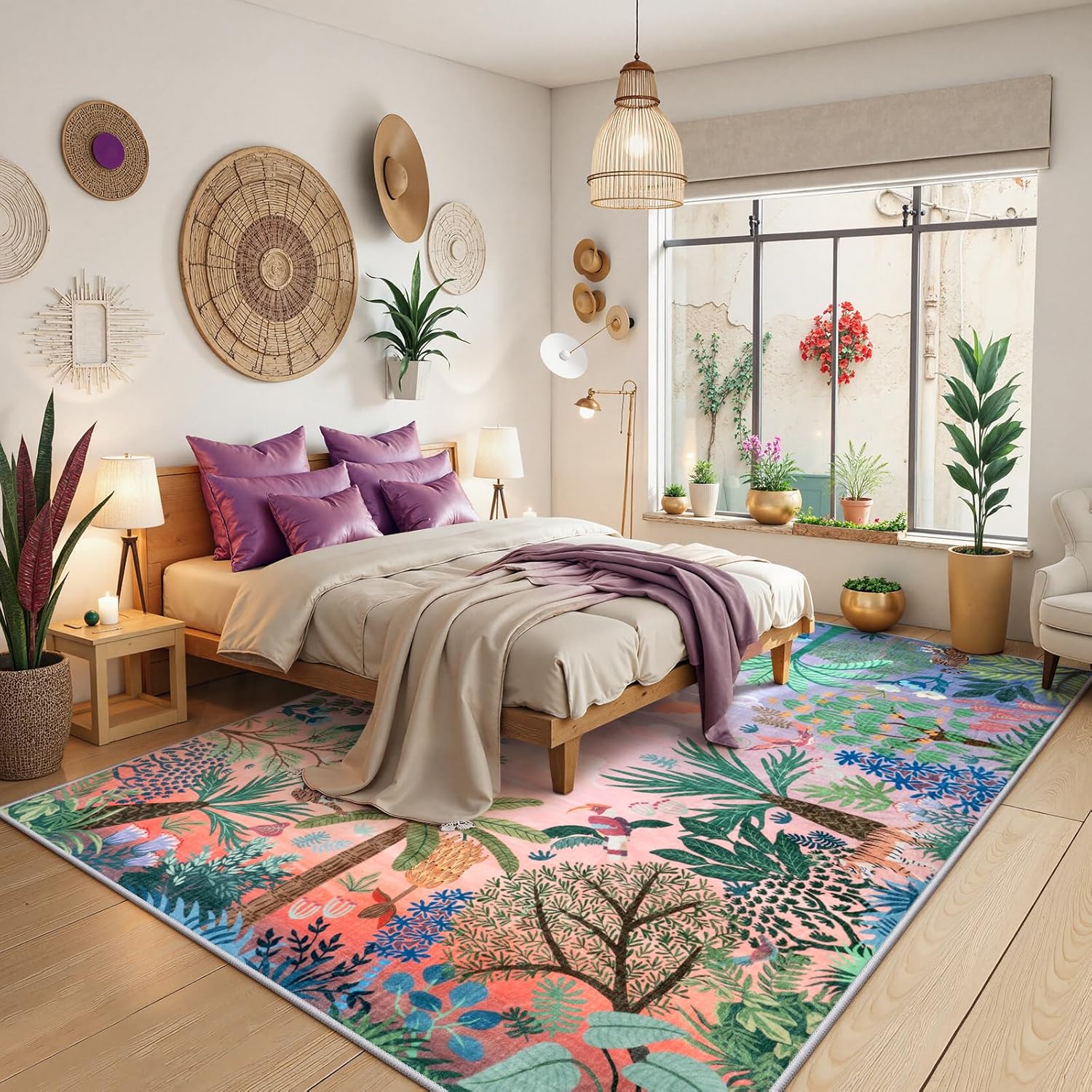 LIVEBOX Jungle Rug 9 x 12 Rug Purple Room Rugs for Bedroom, Soft Washable Area Rugs 9x12 Living Room, Modern Stain Resistant Floor Carpet Play Rugs for Kids Playroom Dining