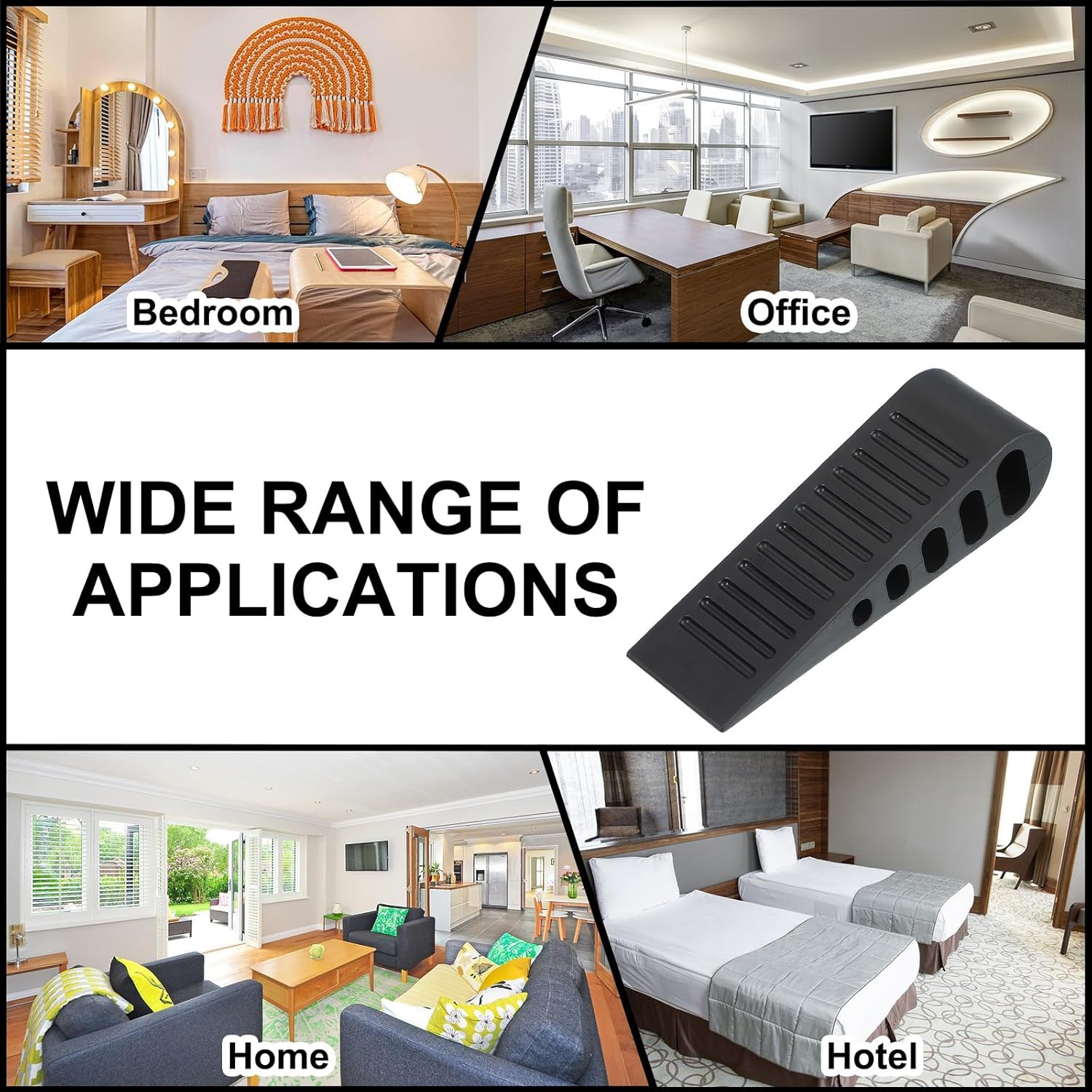 • Sturdy Rubber: The door stop wedges are crafted from TPR material, ensuring reliability, reusability, and non-slip. Suppleness structure with scientific arched holes, effectively preventing doors from closing due to a breeze and helping prevent cats and dogs from accidentally pushing the door closed.