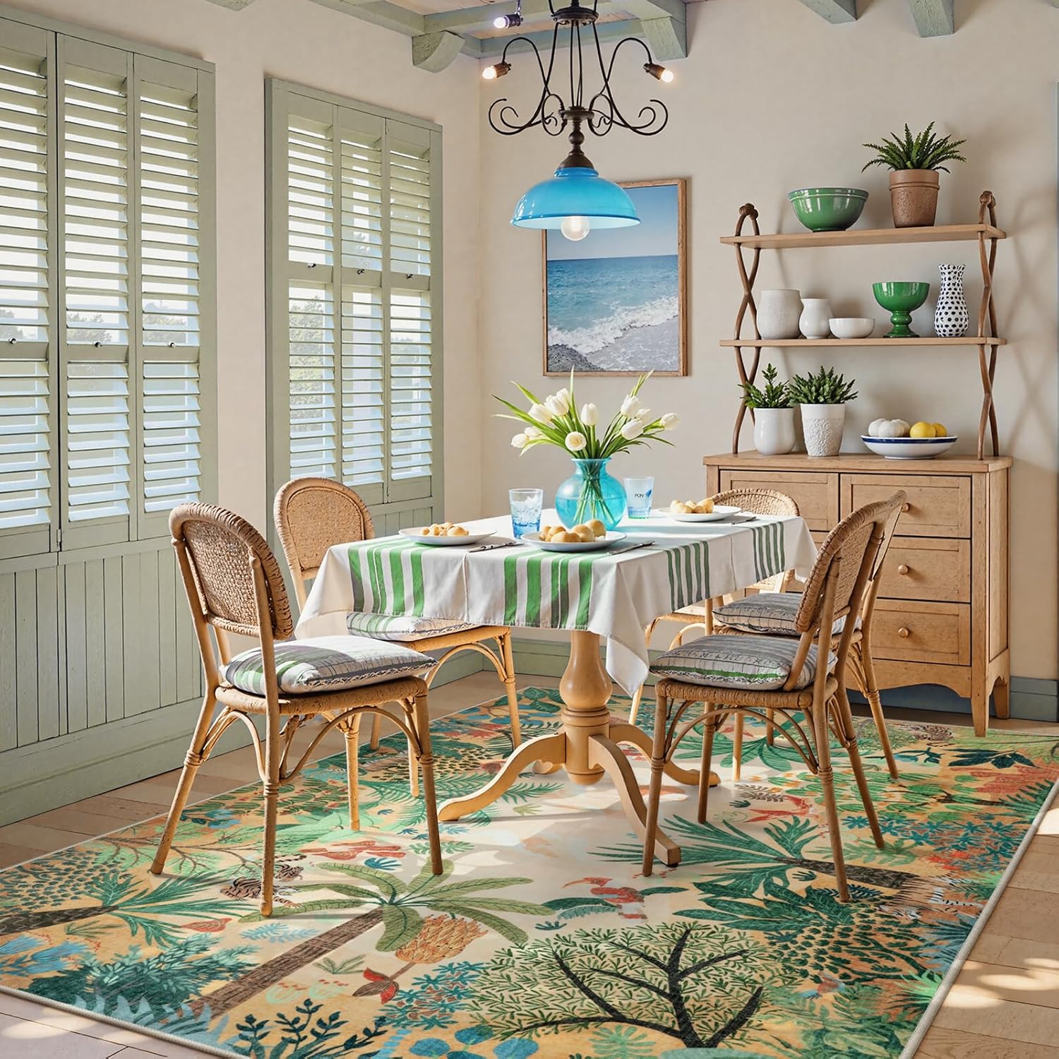 • 【Safe Anti-Slip Backing】: Designed with a sturdy anti-slip backing, this living room rugs 5x7 stays firmly in place on any surface. Its secure grip ensures safety, preventing accidental slips, even in busy areas of your home.