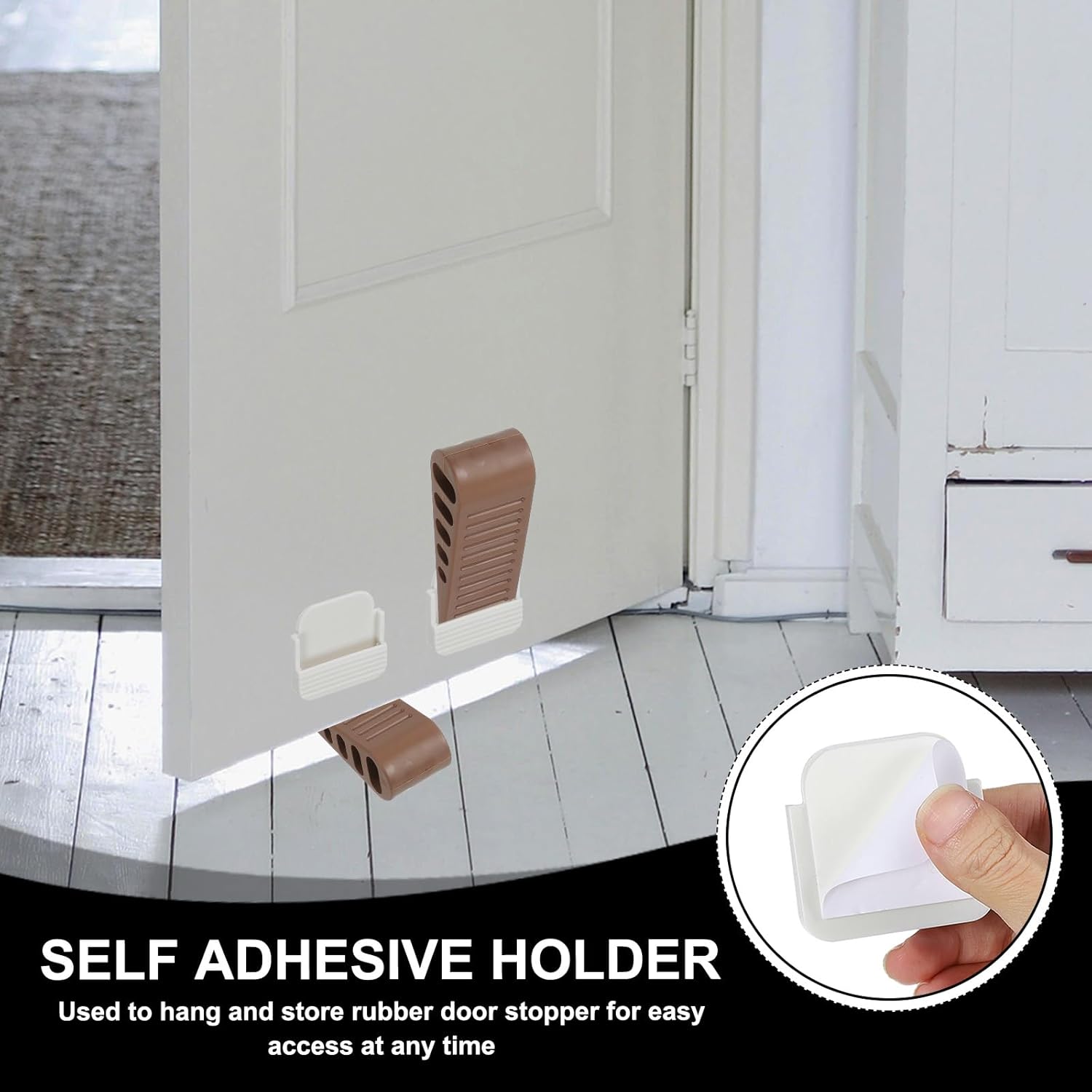 • Instruction: Easy to use and store. Place it at the bottom of your door and let the wedge get stuck without the need for drilling holes or using adhesive tape. You can store the door stoppers in the holder when not in use.