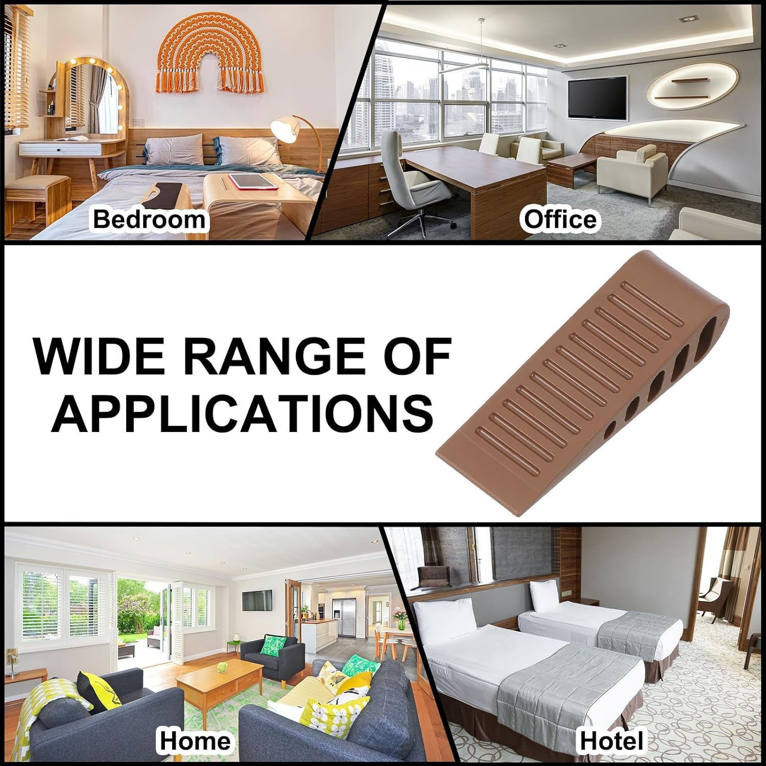 • Application: The rubber door stops offer a secure hold on various floor surfaces, including wood, carpet, cement, tile, and stone. These versatile tools effectively keep doors open while adding a touch of practical elegance to any space.