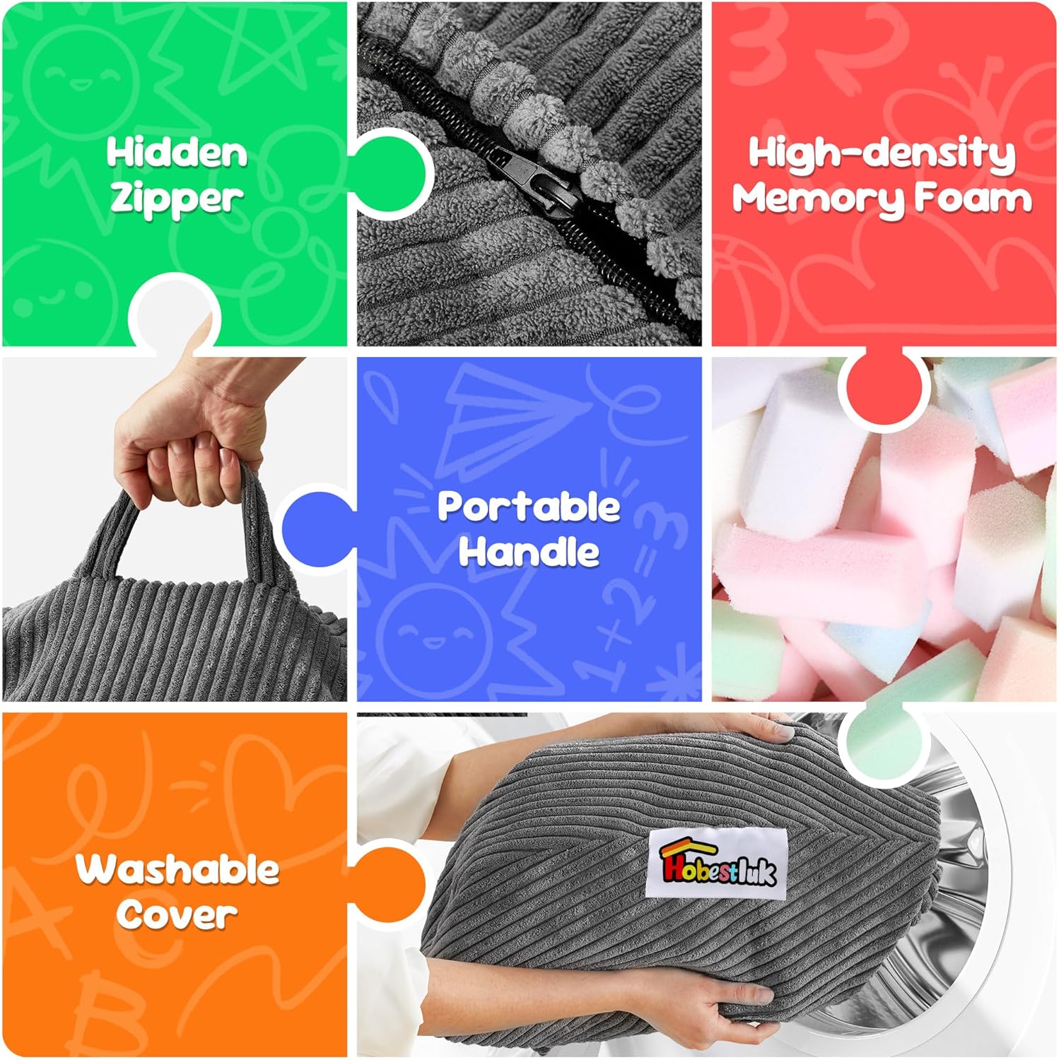 • Creative Design: Hobestluk bean bag chairs look like a tear drop with a wide base that narrows towards the top. There are six colors for you to choose in this design. Plus, our bean bag is made of comfy textured corduroy fabric and high-density memoy foam, which feels like you're sinking into a cloud.