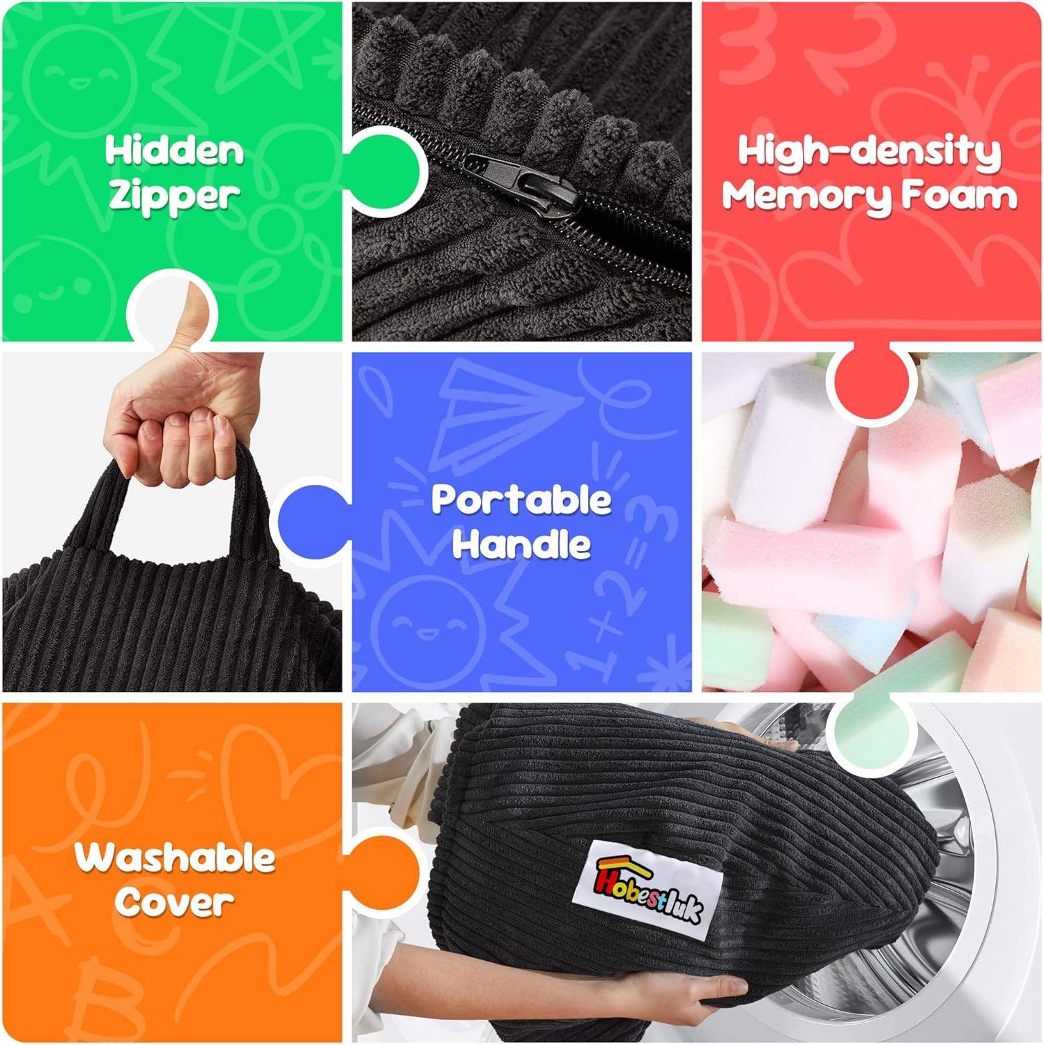 • Creative Design: Hobestluk bean bag chairs look like a tear drop with a wide base that narrows towards the top. There are six colors for you to choose in this design. Plus, our bean bag is made of comfy textured corduroy fabric and high-density memoy foam, which feels like you're sinking into a cloud.