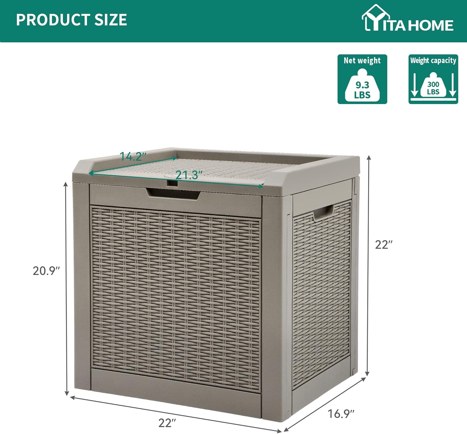 • PRODUCT DIMENSIONS- With a 32-gallon storage capacity and dimensions of 22.1''L x 17.1''W x 20.9''H, this outdoor storage box is the optimal choice for storing small items with easy accessibility