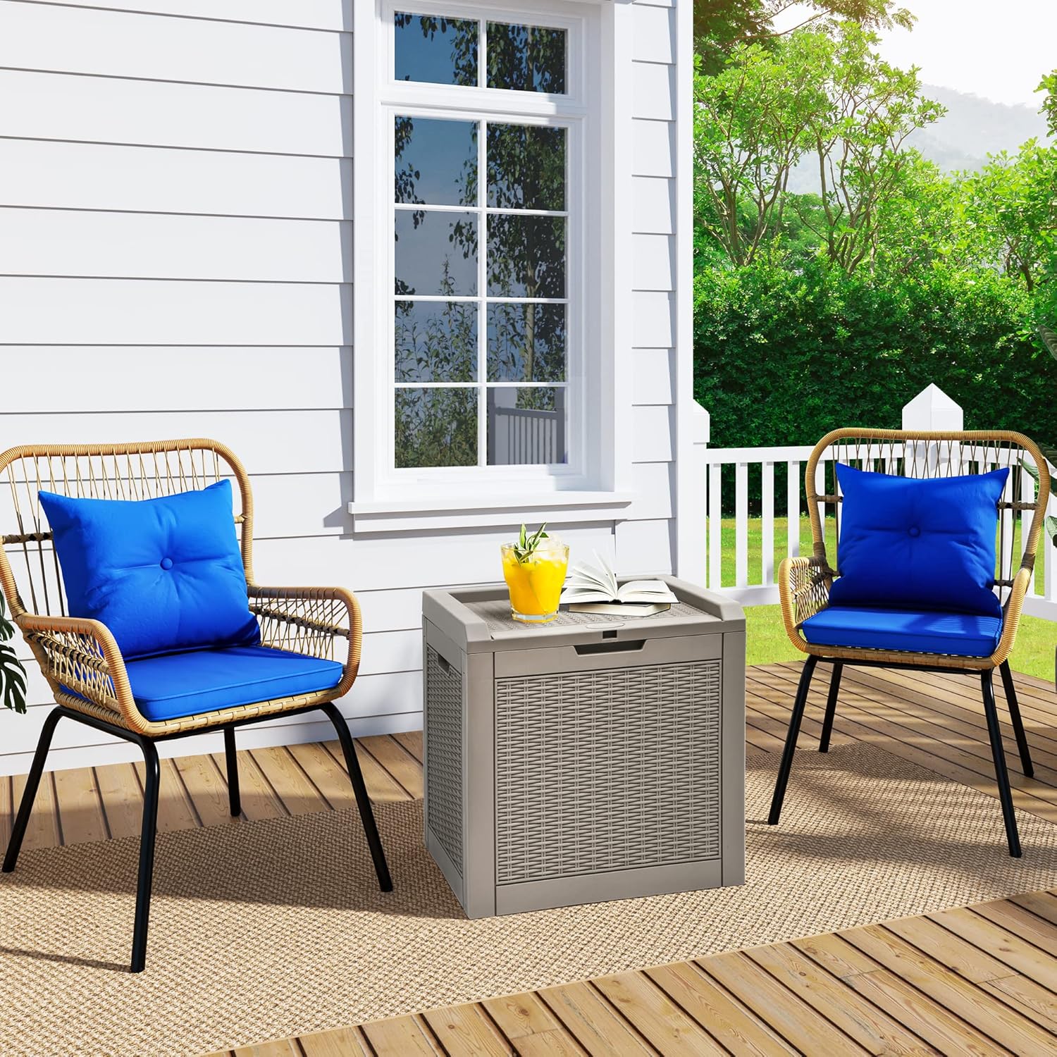 • ALL-WEATHER GUARD- Weatherproof poly resin rattan combines beauty and utility, granting this patio deck storage protection against water, UV, fading, rusting, peeling, and bending; Requires little to no maintenance for years to come