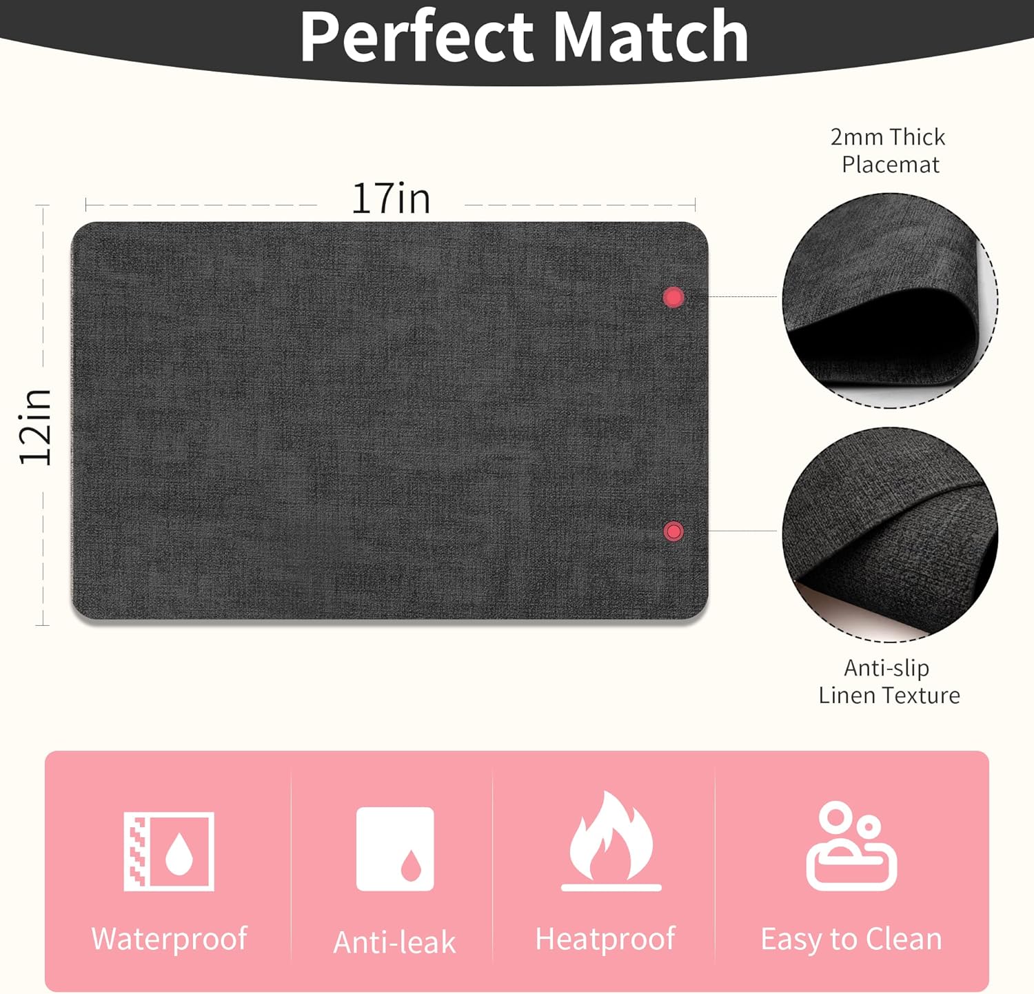 Maxpearl Faux Leather Placemats Set of 4, Waterproof - Wipe Clean - Heat Resistant - Anti Slip Dining Table Place Mats, Suitable for Indoor & Outdoor Use, 17’’×12’’, Black