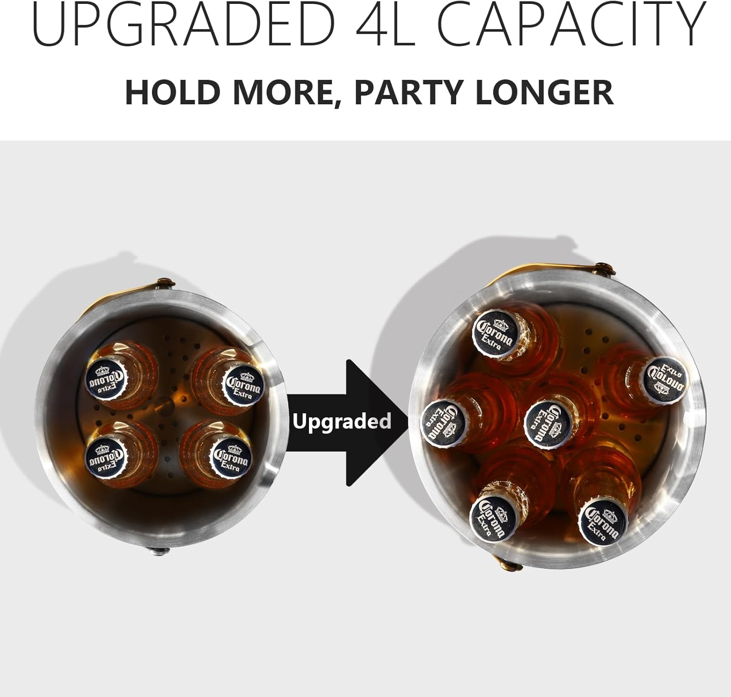 • PARTY PERFECT CAPACITY: This upgraded 4L ice bucket is large enough for parties, home bars, picnics, BBQs, beaches, patios, restaurants, pool parties, weddings, graduations, and more. Keep cocktails, wine, champagne, whiskey, vodka, beer, and soda perfectly chilled. Stay cool this summer with our ice bucket for parties with lid
