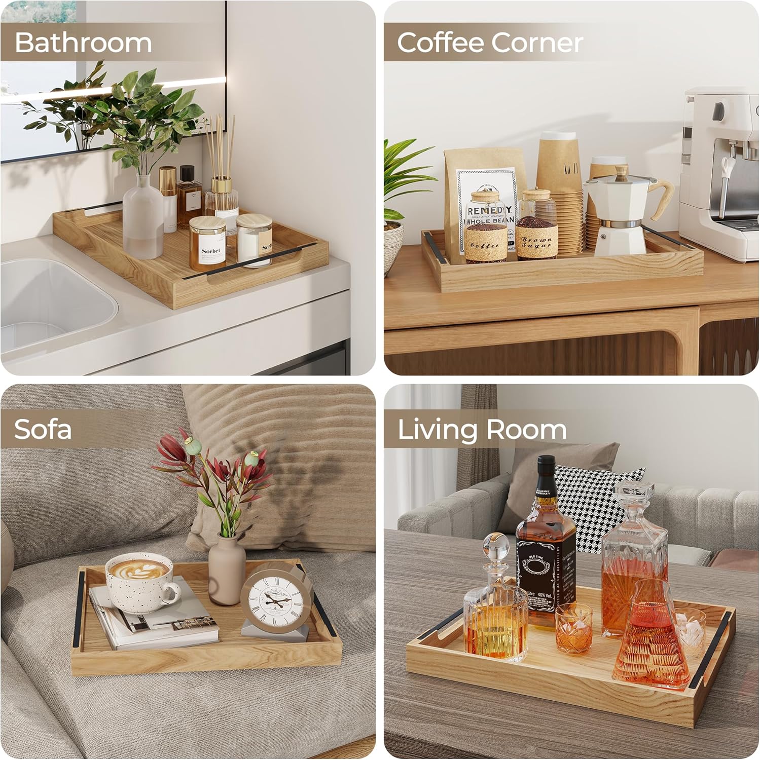 • Premium Timber & Crafting: The ottoman tray is crafted from natural ash wood, which has a beautiful natural wood grain. Perfect for use as a serving tray, ottoman tray, or decorative tray for your coffee table. Our stringent manufacturing standards guarantee a well-crafted, robust wood serving tray that will endure for years without chipping