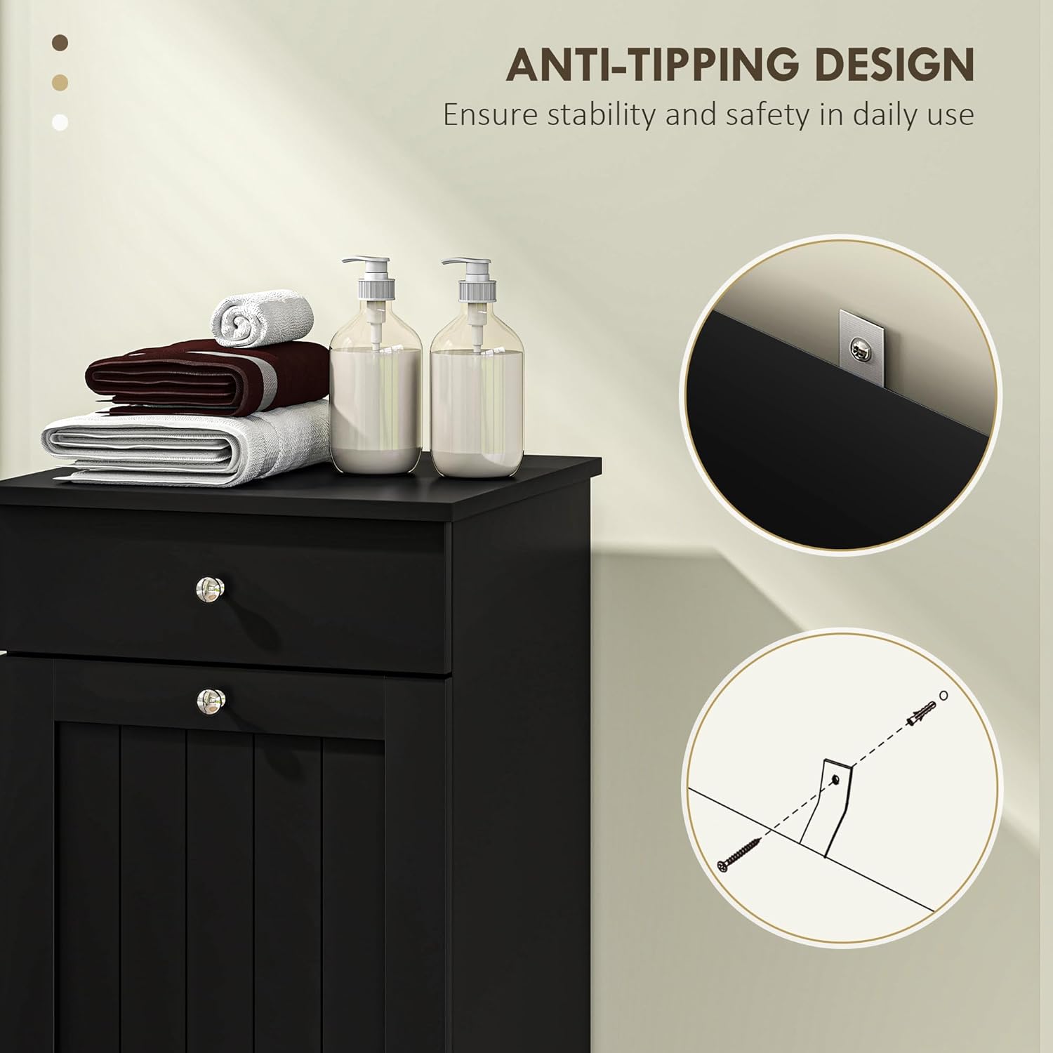 HOMCOM Laundry Hamper with Removable Basket, Tilt Out Hamper with Drawer and Beadboard Door, Bathroom Storage Cabinet, Black