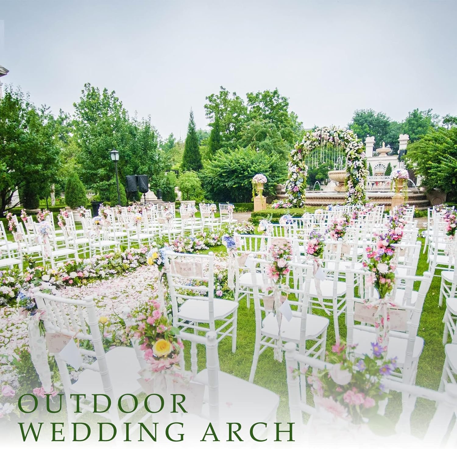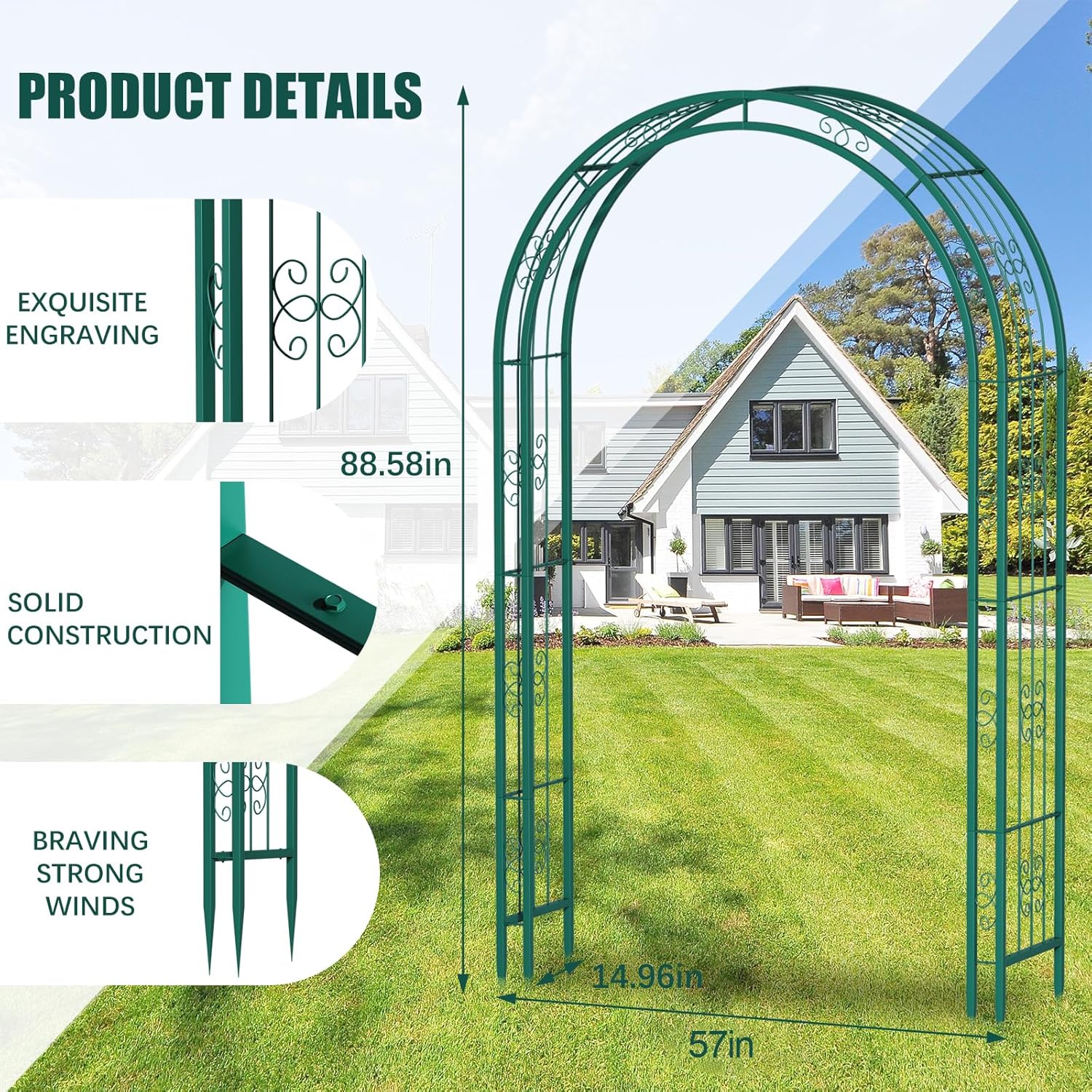 • 【Perfect for Outdoor Use】Our metal arch is mainly designed as an eye-catching decoration on garden, yard, patio or park. You can place it in front of your doorway or the pavement, making a perfect entry out of it. Or you can use it as a decorative backdrop for your wedding to bring you wonderful memories.Arch size: 57" wide x 88.6" high,7ft.