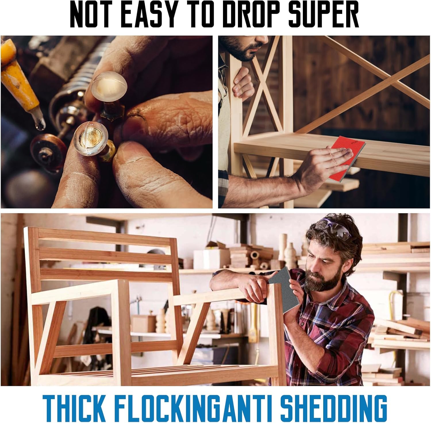 • Widely Used: Sanding block material is soft, with uniform surface treatment, suitable for processing various shapes of workpieces, and is very suitable for models, handicrafts, furniture, wood carving, and metal polishing.