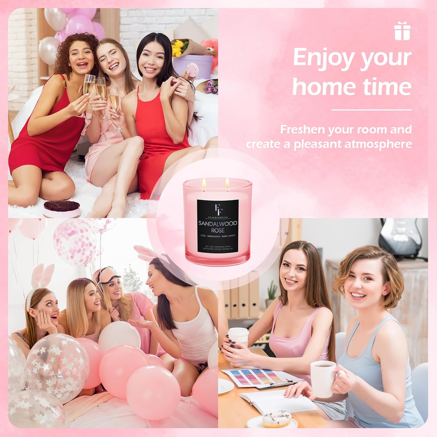 Sandalwood Rose Scented Candle, 2-Wick Luxury Soy Wax Candle, 9 oz Aromatherapy Candle Home Fragrance Candles Gift
