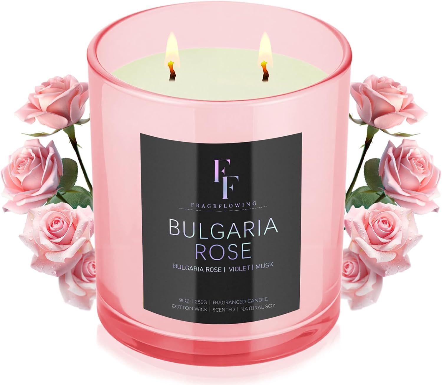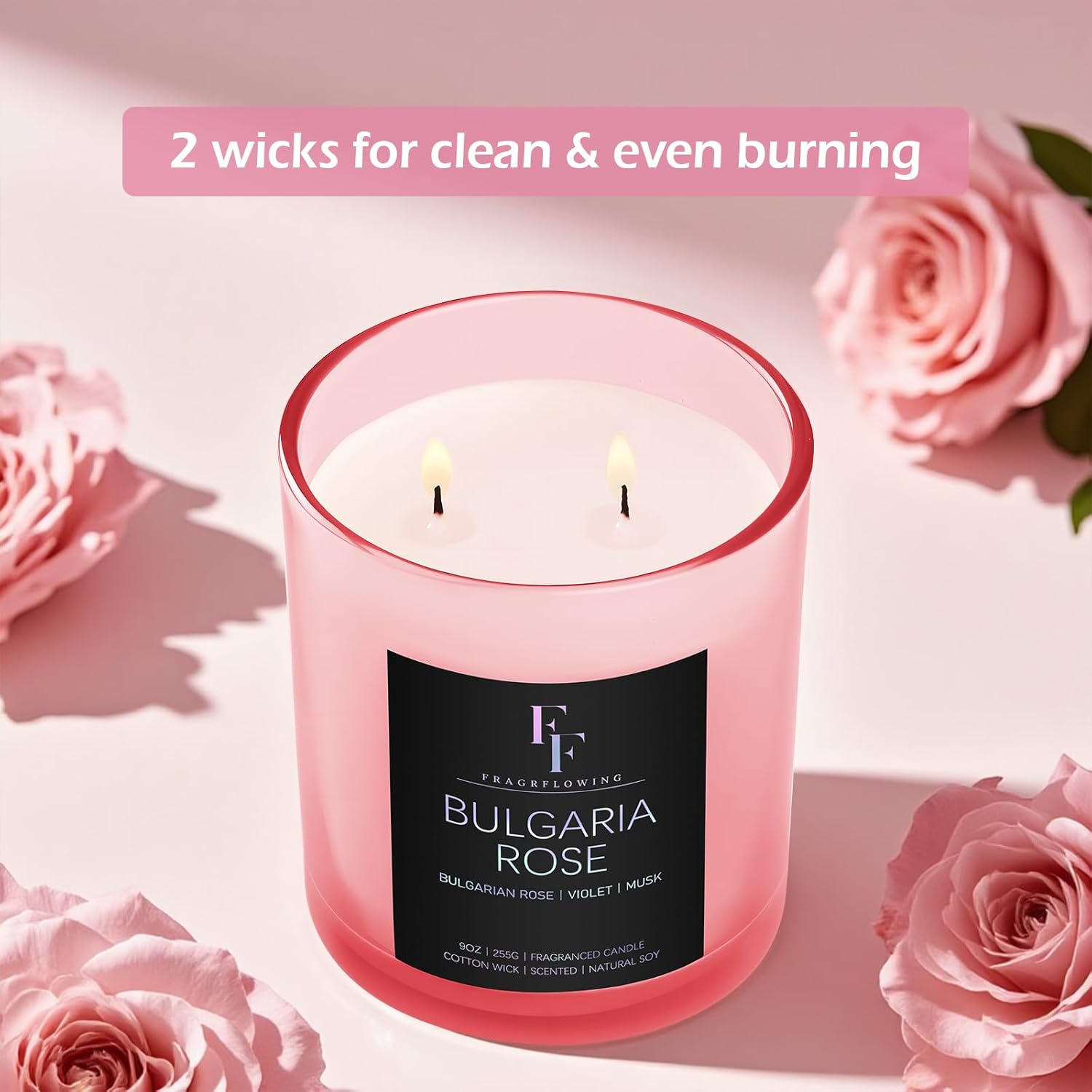 Bulgaria Rose Scented Candle, 2-Wick Luxury Soy Wax Candle, 9 oz Aromatherapy Candle Home Fragrance Candles Gift