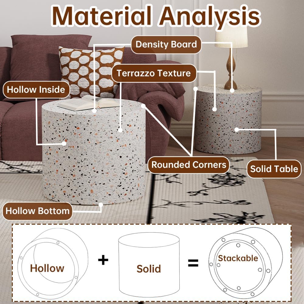 • Nesting Coffee Table Set of 2: This nesting coffee table includes two small coffee table. The round nesting coffee table is perfect for holding coffee, books, decorative items, drinks, remote controls, or other daily essentials. The nested coffee table can be used independently or combined to create a flexible and dynamic living space. Whether you're enjoying a cup of coffee on the coffee table nesting or using it for everyday items, this nesting tables meets your needs and enhances your quality of life.