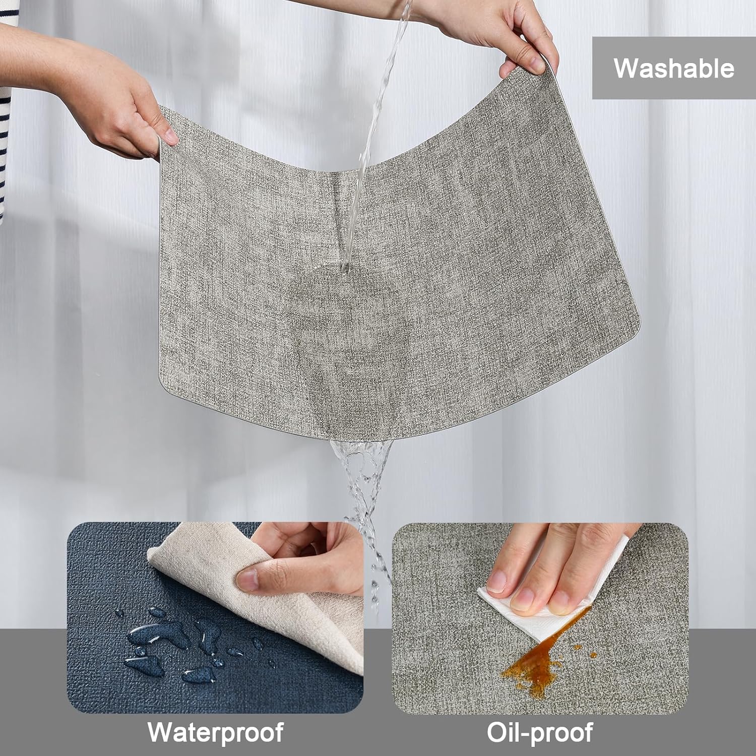 • These placemats are made of faux leather, the sufface texture imitate the linen. Unlike woven or fabric placemats, these placemats are water resistant, they can block the sauce or any liquids to protect the desktop.