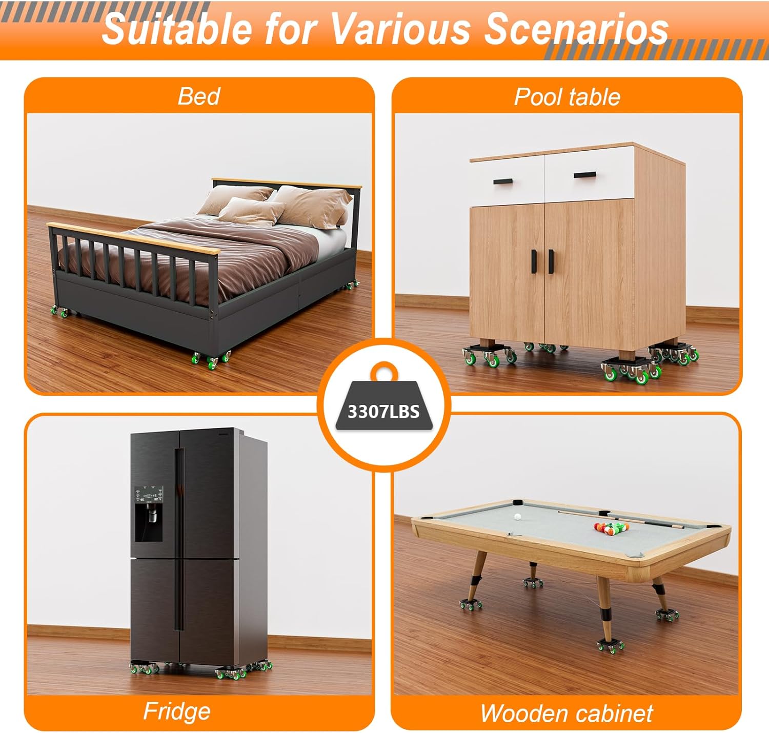 • Versatile for All Furniture: Ideal for moving sofas, beds, wardrobes, refrigerators, pianos, and other large appliances. Designed for smooth use on wood and tile floors, this dolly glides effortlessly—note: not suitable for uneven floors or high-pile carpets.