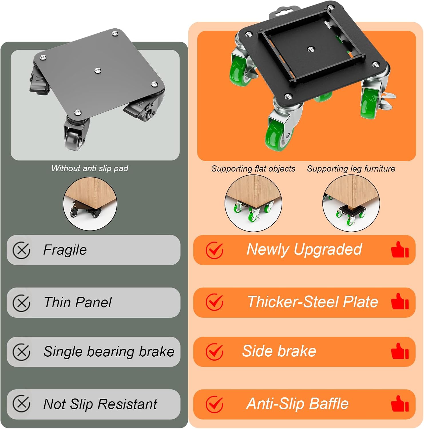 • Smooth, Flexible Movement: Equipped with five 1.97-inch single-bearing large wheels, this dolly offers smooth, flexible movement under heavy loads. The side brake system locks the wheels, providing stability and control once your furniture is in place, perfect for heavy-duty transport.