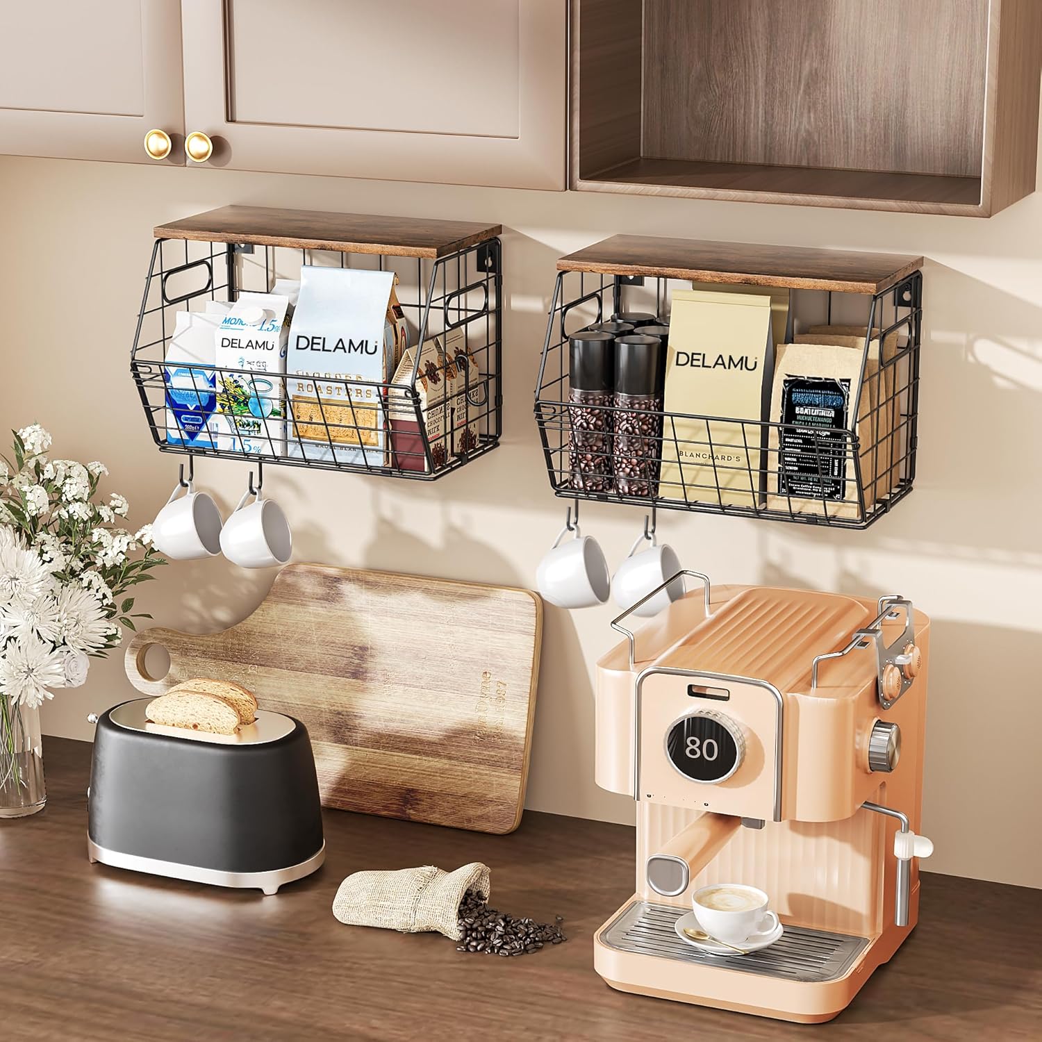 • 【Stack or Hang—Your Choice!】Use as tiered countertop organizers or wall-mounted baskets to free up workspace.The lid's flat surface stores foil,cookbooks,or coffee pods—doubling your storage efficiency