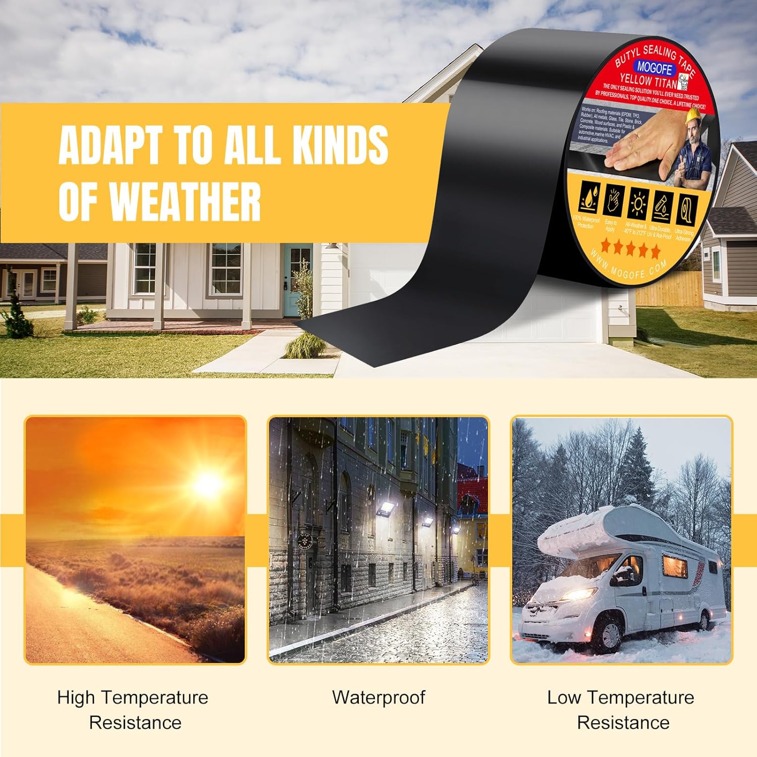 • Weatherproof & UV-Resistant Sealant Tape: Protect your RV with our Butyl RV Roof Tape. Resists rain, snow, and harsh winds, preventing leaks. Weatherproof & UV-resistant for lasting defense.