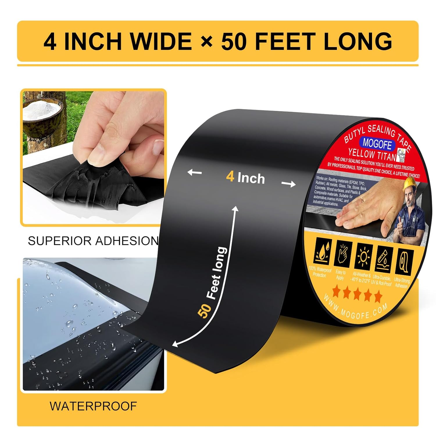 • Professional RV Roof Repair Tape: 4 inches wide, 50 feet long. Ideal for professional RV repairs, it seals roofs, windows, and doors for lasting protection, ensuring worry-free camping in any weather.
