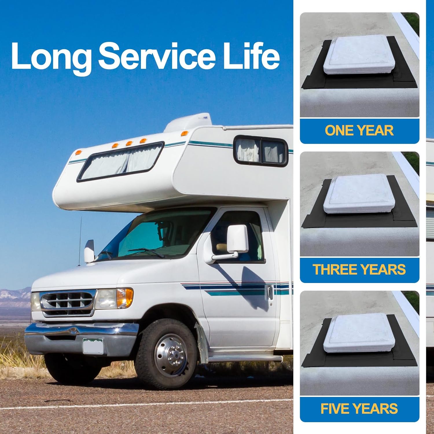 • Professional RV Roof Repair Tape: 6 inches wide, 50 feet long. Ideal for professional RV repairs, it seals roofs, windows, and doors for lasting protection, ensuring worry-free camping in any weather.