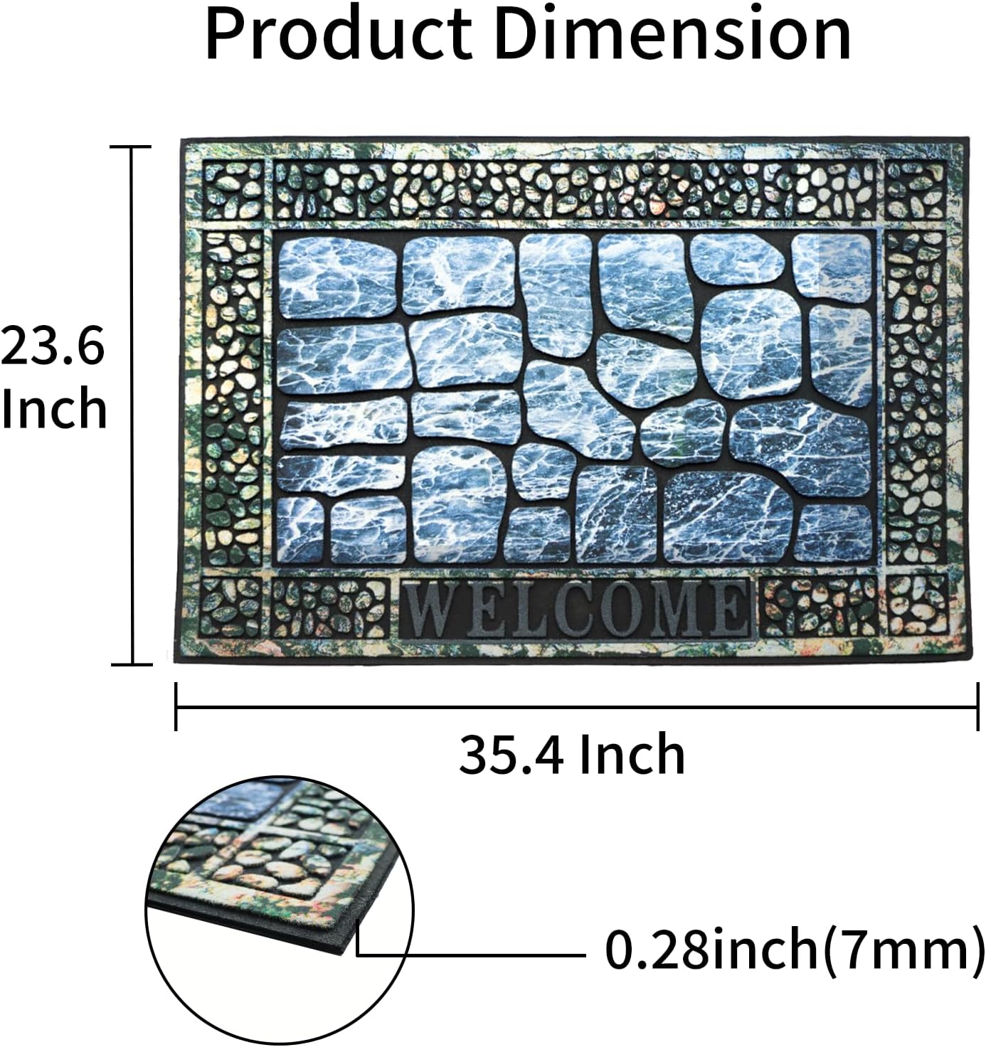 • 【Heavy Duty Door Mat】The door mat for outside measures 23.6 x 35.4 inches with a thickness of 0.28 inches. Made from quality and durable rubber, it ensures long-lasting durability and performs well in all weather conditions, making it suitable for year-round outdoor use.