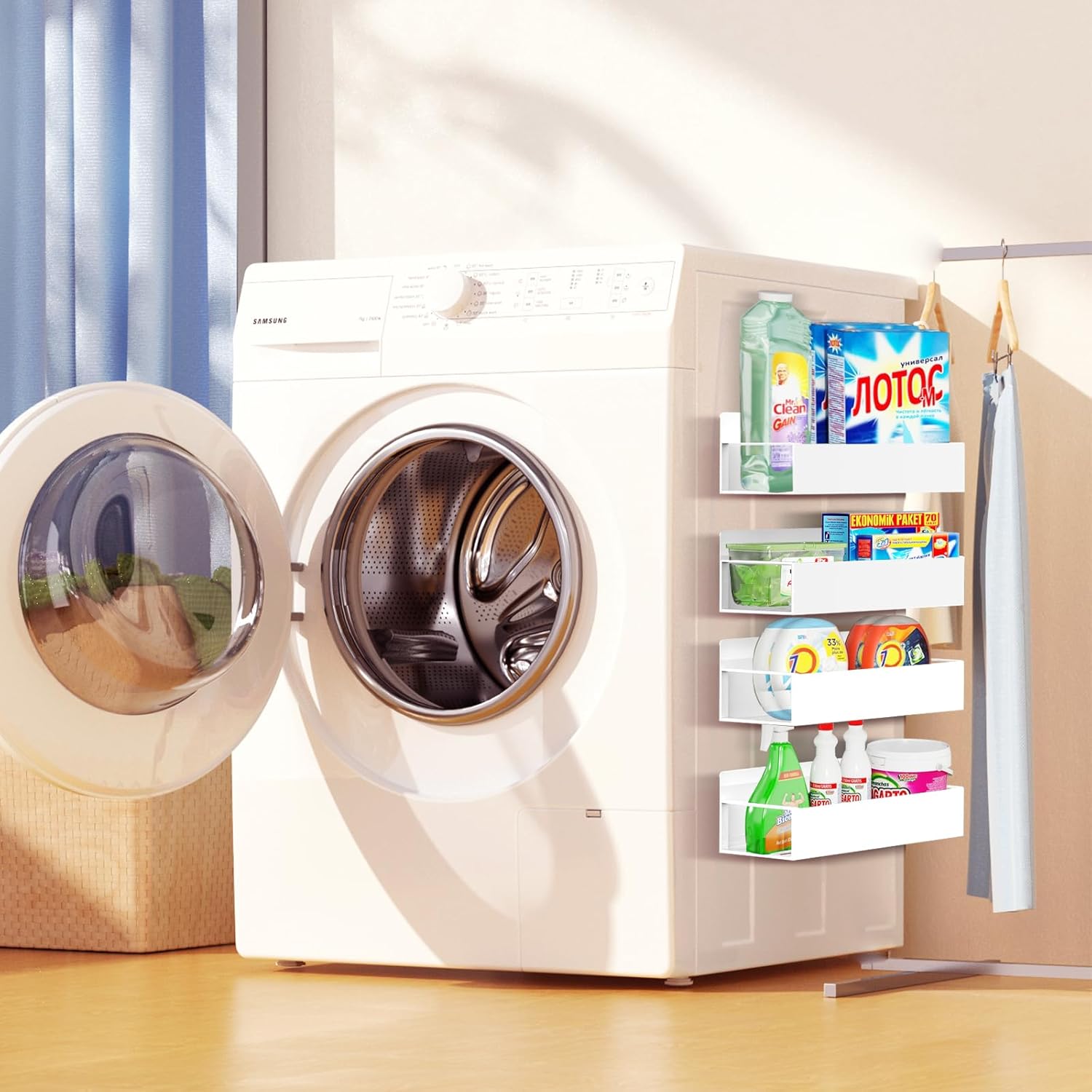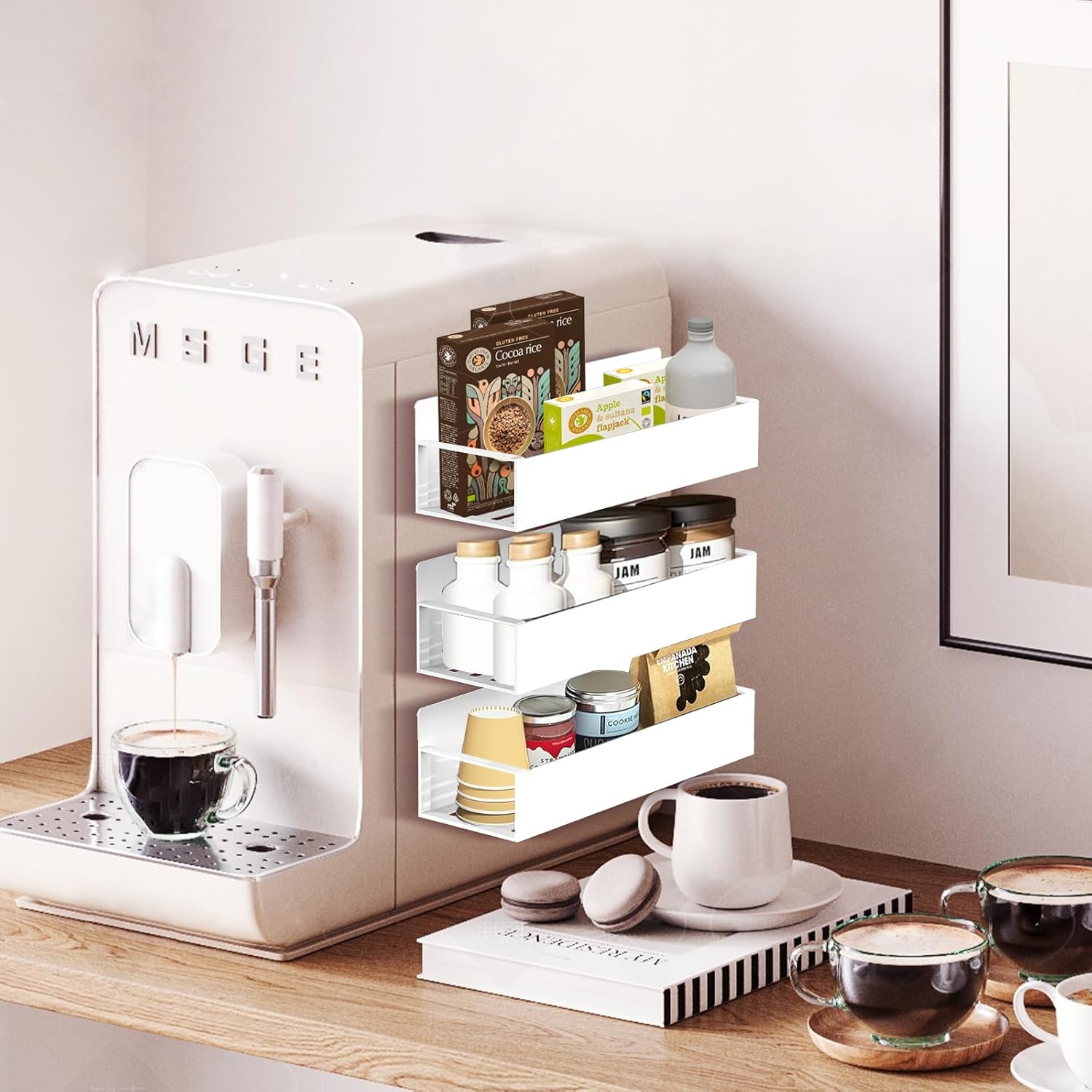 Magnetic Spice Rack Organizer for Fridge Seasoning Organizer for Kitchen Storage With Screw Magnetic Shelf for Oven, RV,Garage,Bathroom (White, 4pack)