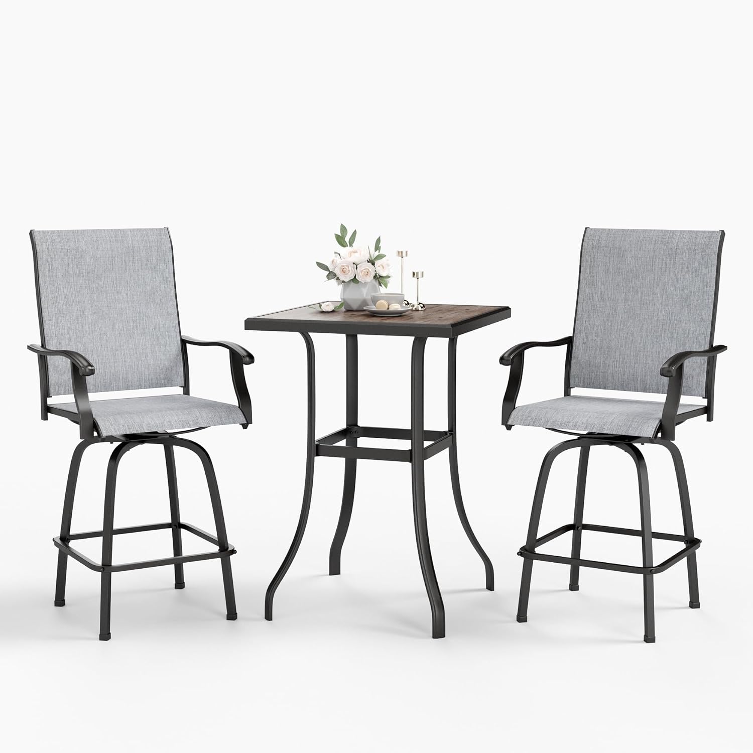 Sophia & William Outdoor Bar Set, Patio Bar Table and Chairs Set, Bar Height Patio Set - 2 x Swivel Bar Chairs(Grey), 1 x Square Bar Table(Wood-Like)