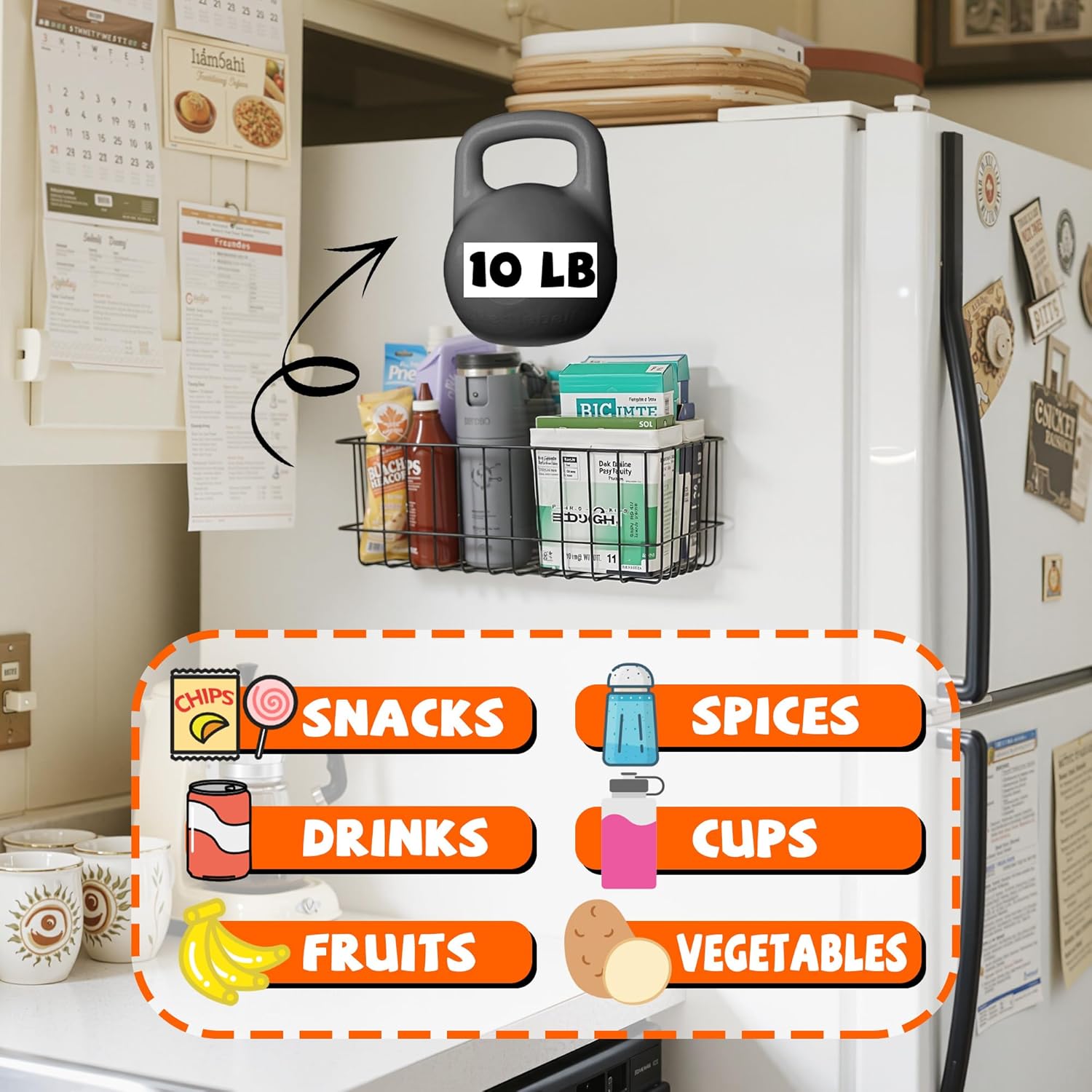• [Space Saving Wire Magnetic Bins]: This magnetic storage basket makes full use of vertical space, turning metal surfaces into a practical storage area. It’s ideal for organizing your non refrigerated fruits and vegetables, laundry supplies, garage tools, garden essentials, etc