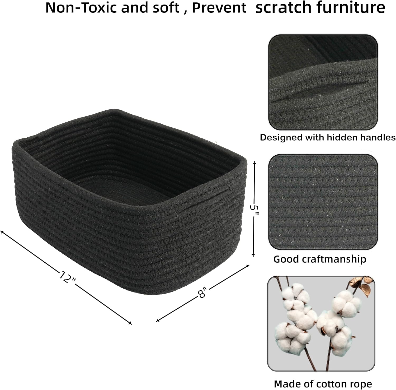 Small Woven Storage Baskets 12“X8”X5“ Decorative Rope Bins for Organizing Shelves, Closets, and Toys, Empty Gift Baskets, Cute Organizer Basket for Home and Office (black, regular)
