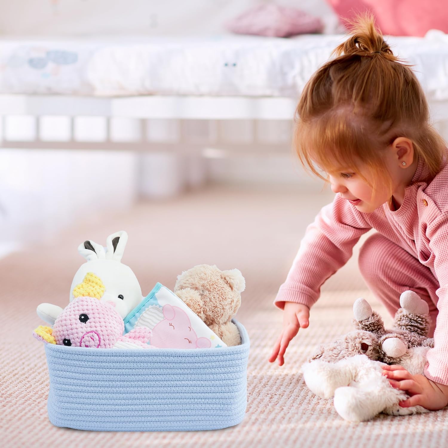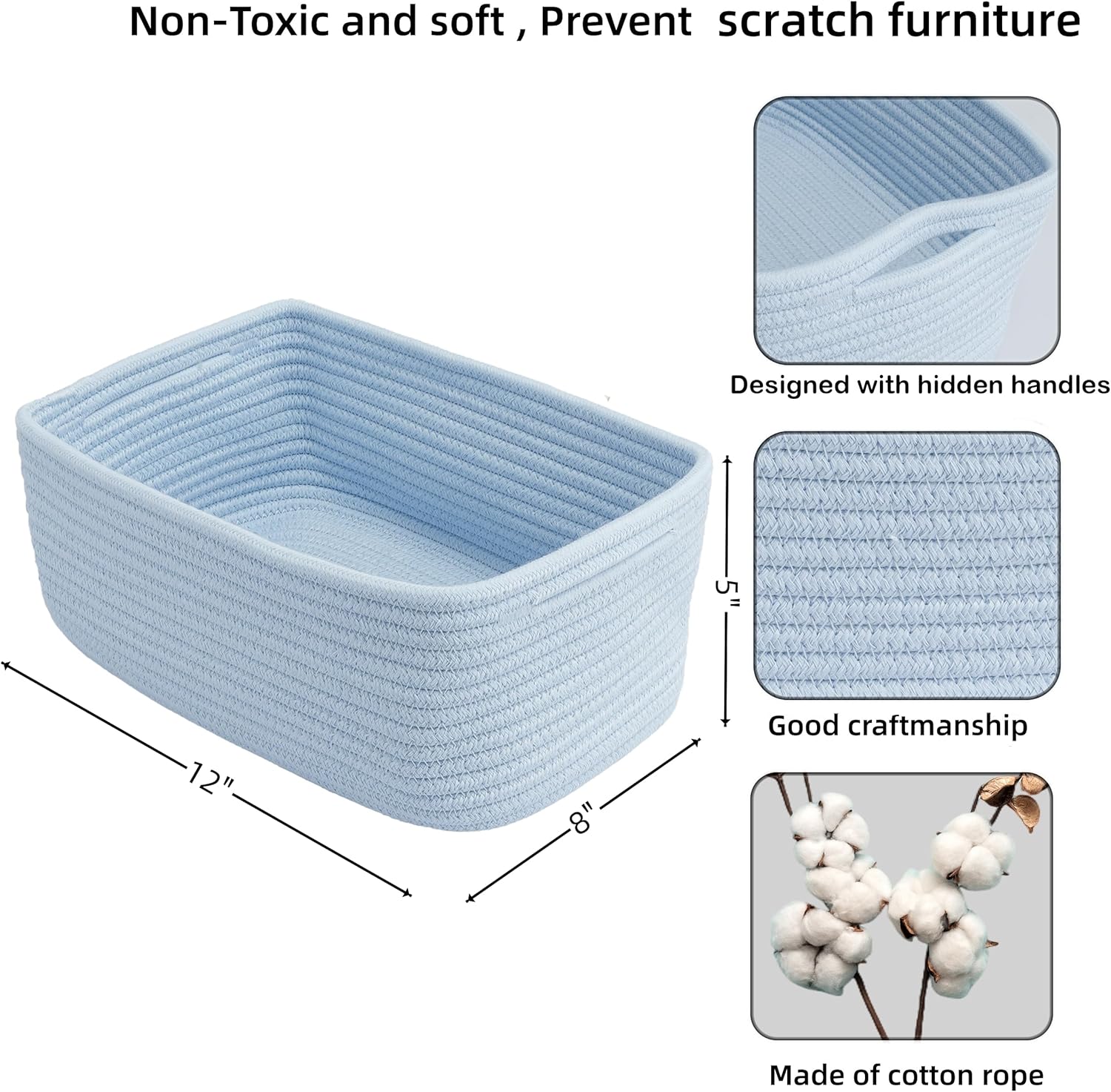 Small Woven Storage Baskets 12“X8”X5“ Decorative Rope Bins for Organizing Shelves, Closets, and Toys, Empty Gift Baskets, Cute Organizer Basket for Home and Office (blue, regular)