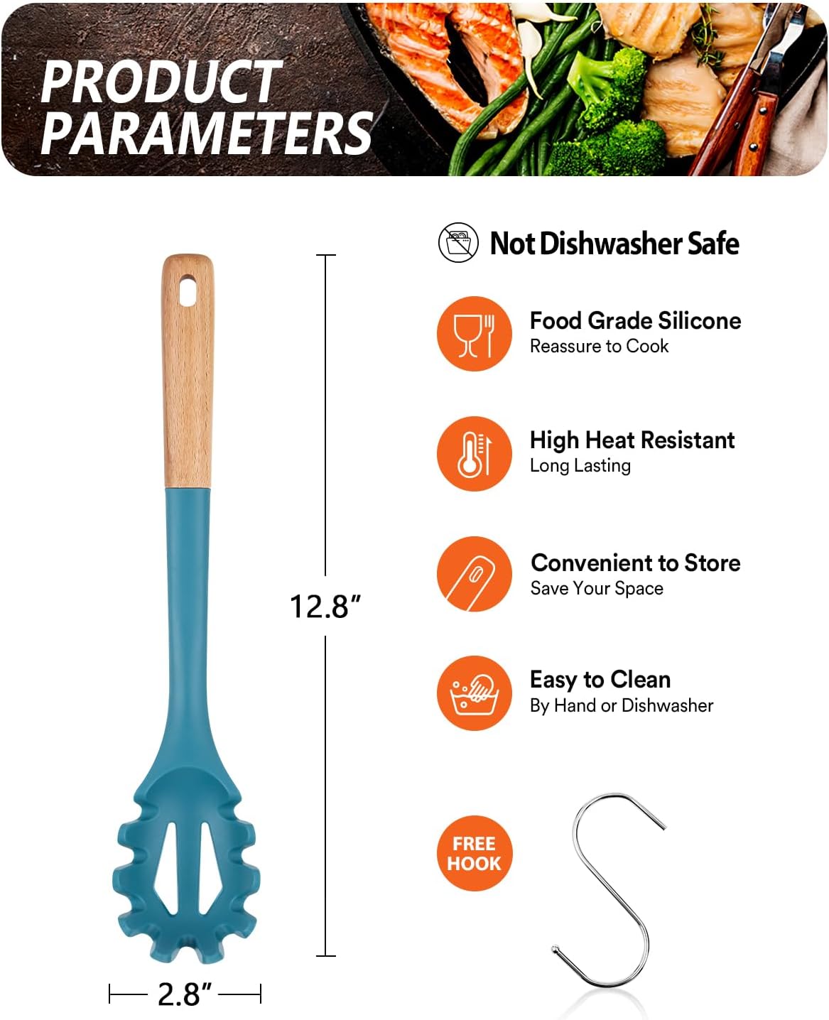 • Just Want To Provide The Best For You : The soft food-grade silicone head is designed for noise-free cooking. Unique sawtooth design, easy to pick up noodles. Whether it is used for stirring or serving spaghetti. Our silicone pasta fork will add more fun to your kitchen