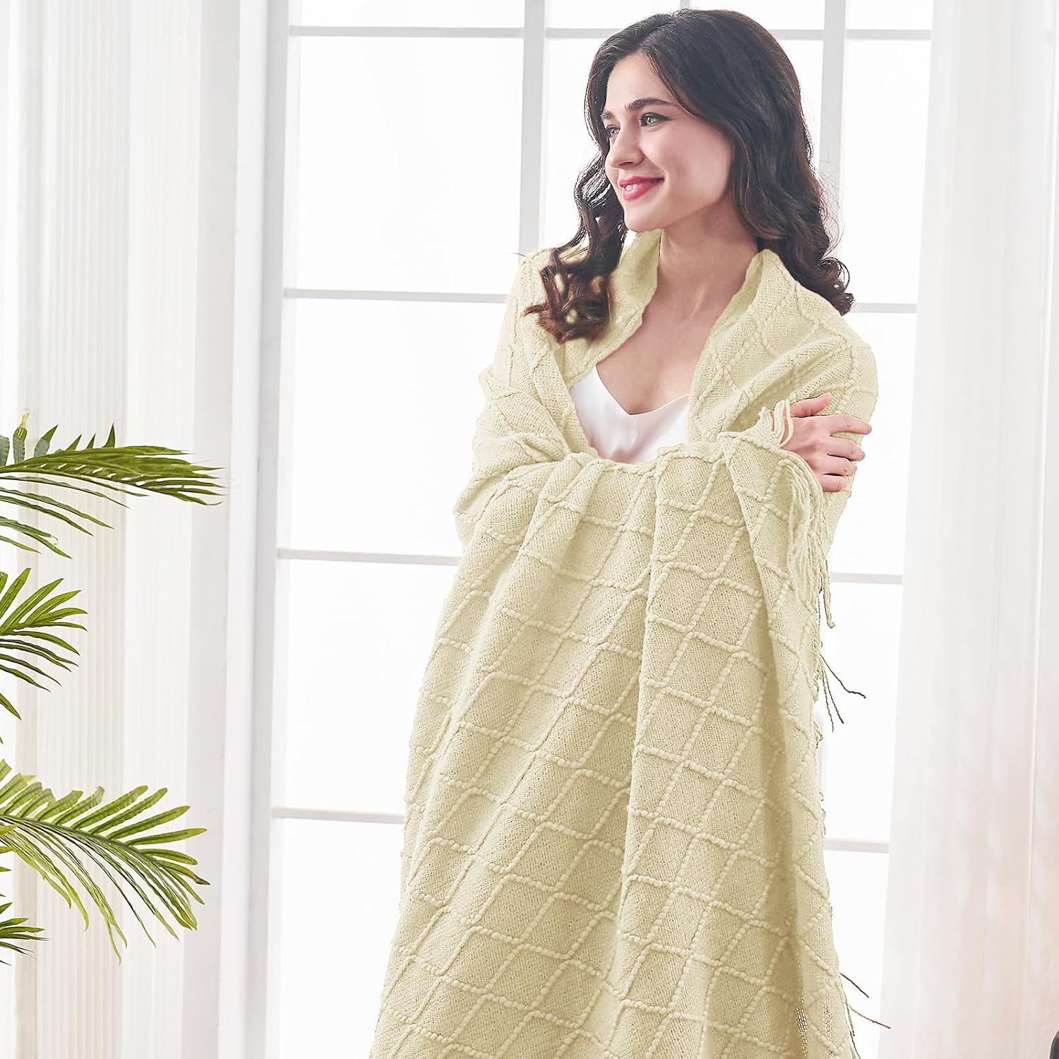 inhand Knitted Throw Blanket for Couch and Bed, Soft Living Room Home Decor Knitted Blanket with Tassel, Outdoor Lightweight Breathable Summer Blanket, Farmhouse Warm Woven Decorative, 50"x60"
