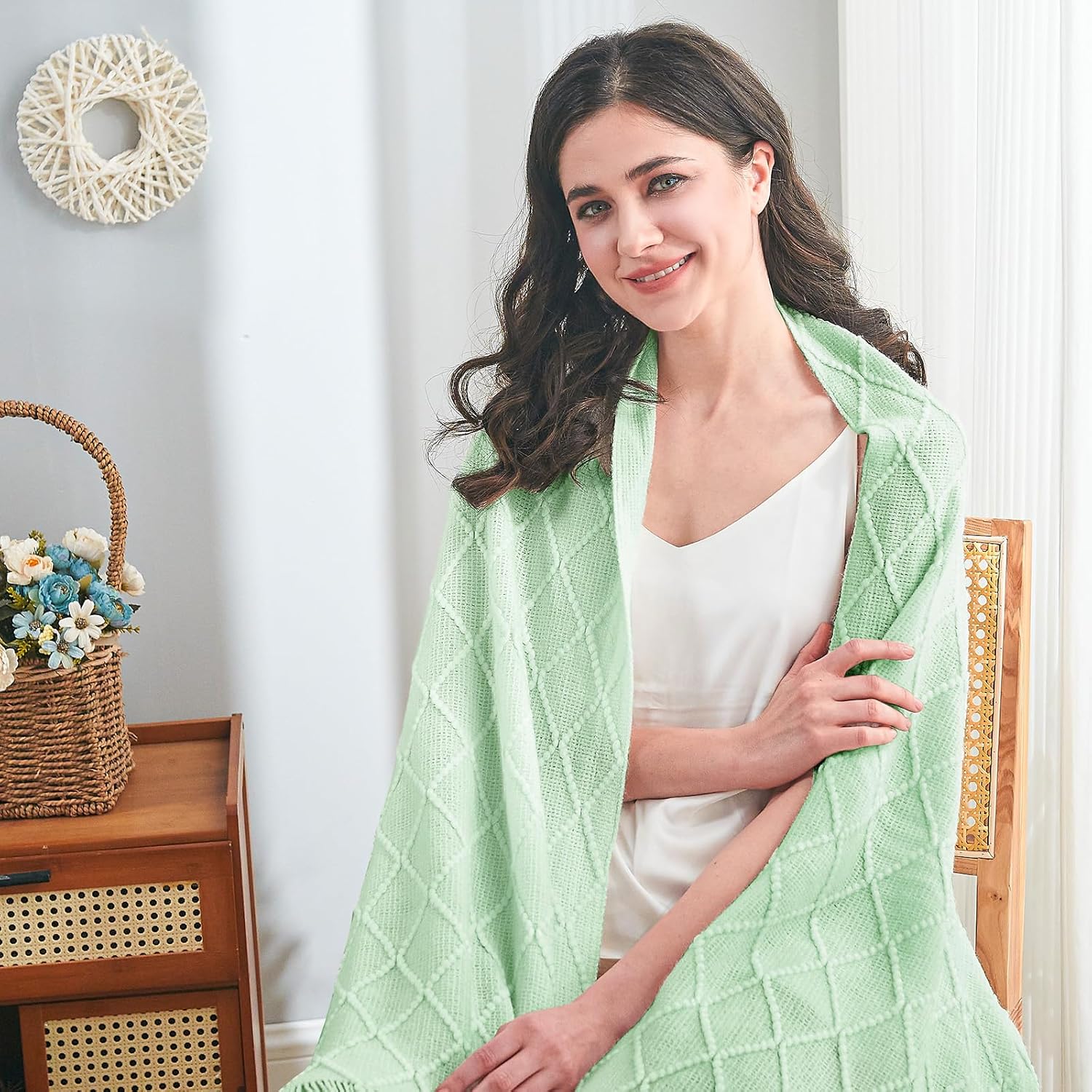• 【2025 NEW COLOR】 We understand the unique pursuit of each consumer's home style, so we specially introduced a new color of 2025 knitted blanket: Whether it's Rouncy Mint, Mint Green, Sky Blue, Sand Gold Green,Cloud Cream, Ashley Blue, Camel, Light Purple, Golden Palm, Cornflower Blue, Wild Fern Green, Earth Brown, Pomegranate Red or Dusk. Whether you are pursuing simple and modern, or prefer a retro style, there is sure to add a touch of bright color to your home environment.