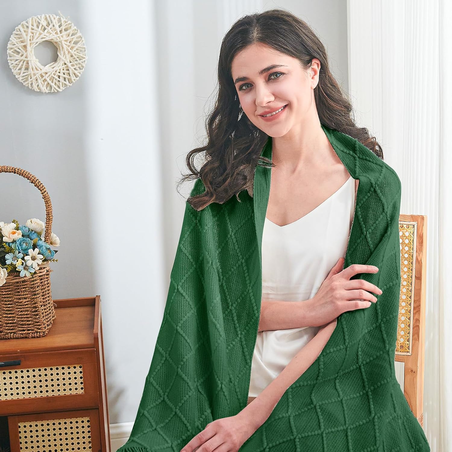 • 【GIFT IDEAS】: Special knitted diamond patterns add a unique accent to your room and people draping it as a shawl. Very suitable for tasteful homeowners. Throw blanket for women, classic but not too tacky as a housewarming gift. Tips: Due to different lighting, display settings, or resolutions, the difference in color happens. We are dying to show the color. To do so, one of the images shows the color difference in different lighting. Hope these instructions would help you to buy a throw.