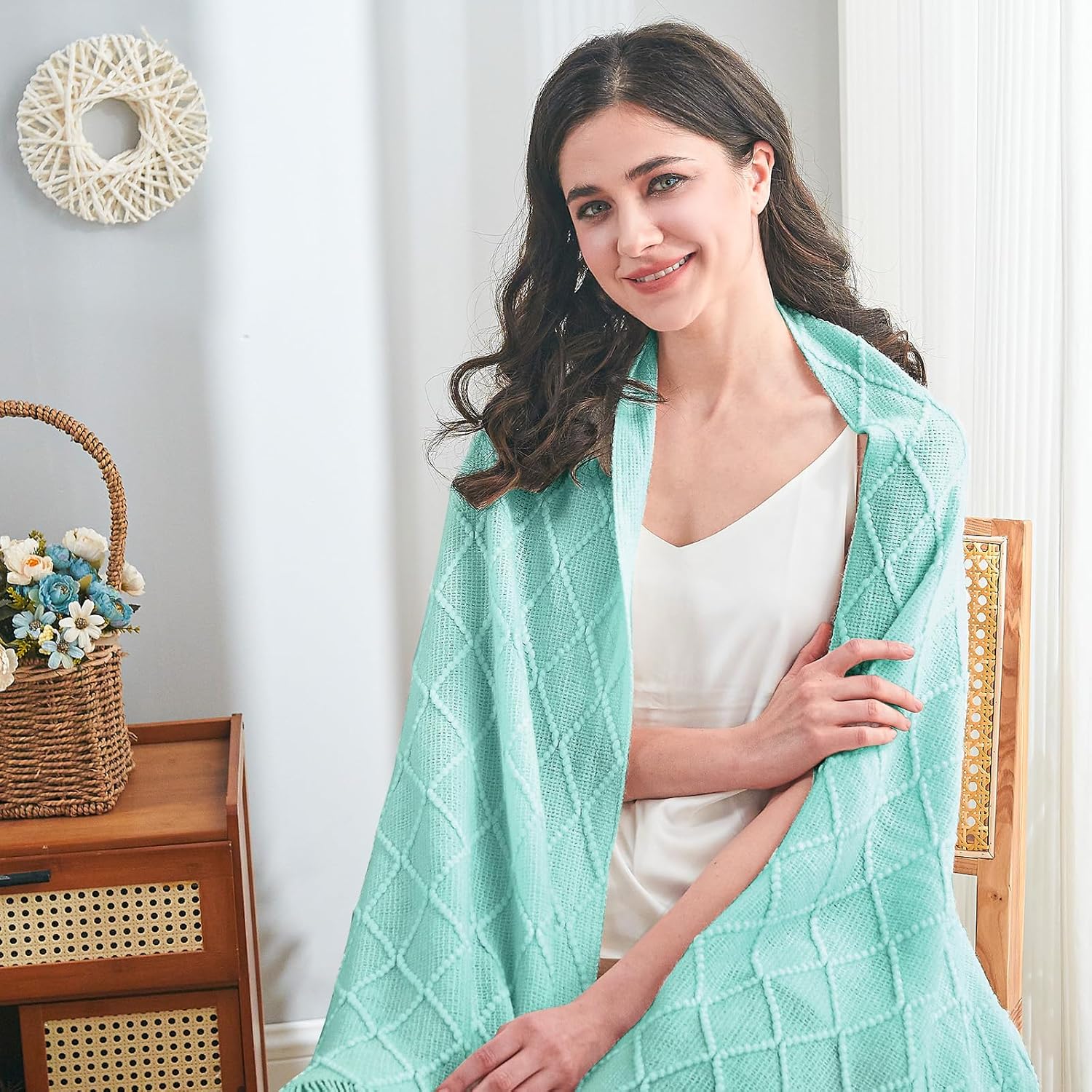• 【2025 NEW COLOR】 We understand the unique pursuit of each consumer's home style, so we specially introduced a new color of 2025 knitted blanket: Whether it's Rouncy Mint, Mint Green, Sky Blue, Sand Gold Green,Cloud Cream, Ashley Blue, Camel, Light Purple, Golden Palm, Cornflower Blue, Wild Fern Green, Earth Brown, Pomegranate Red or Dusk. Whether you are pursuing simple and modern, or prefer a retro style, there is sure to add a touch of bright color to your home environment.