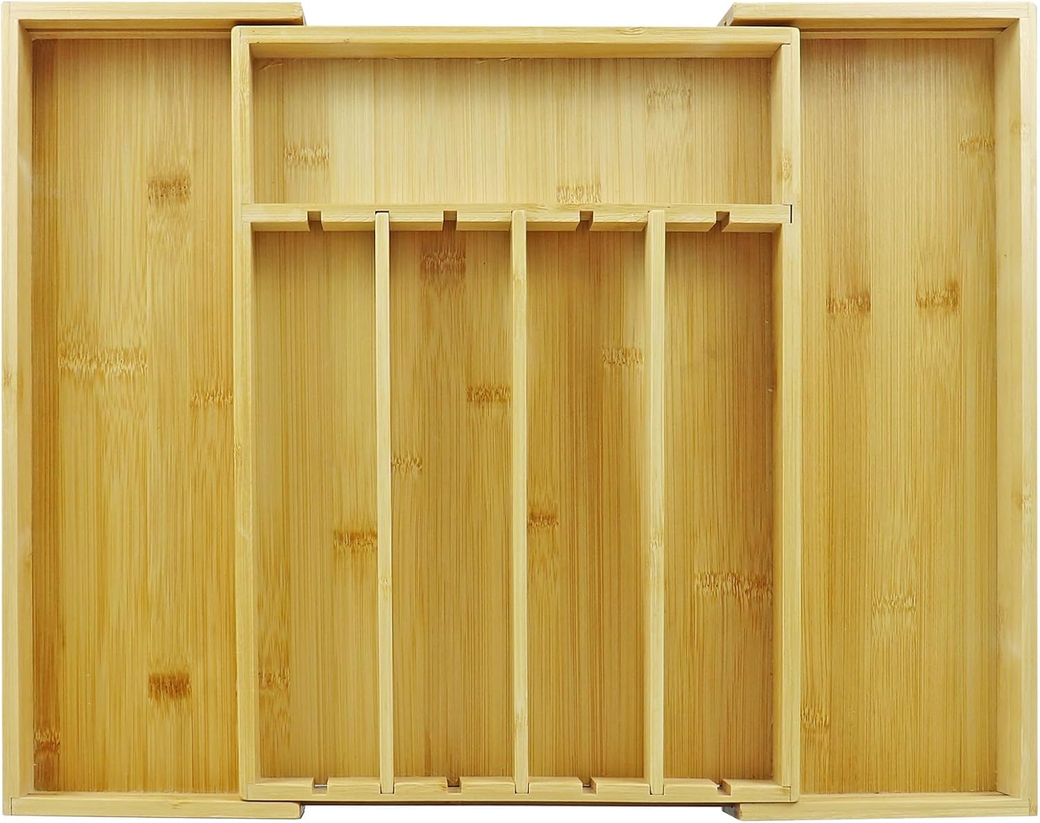• Bamboo Construction: Crafted from high-quality bamboo, these silverware tray offer a natural and durable solution for your kitchen drawer.