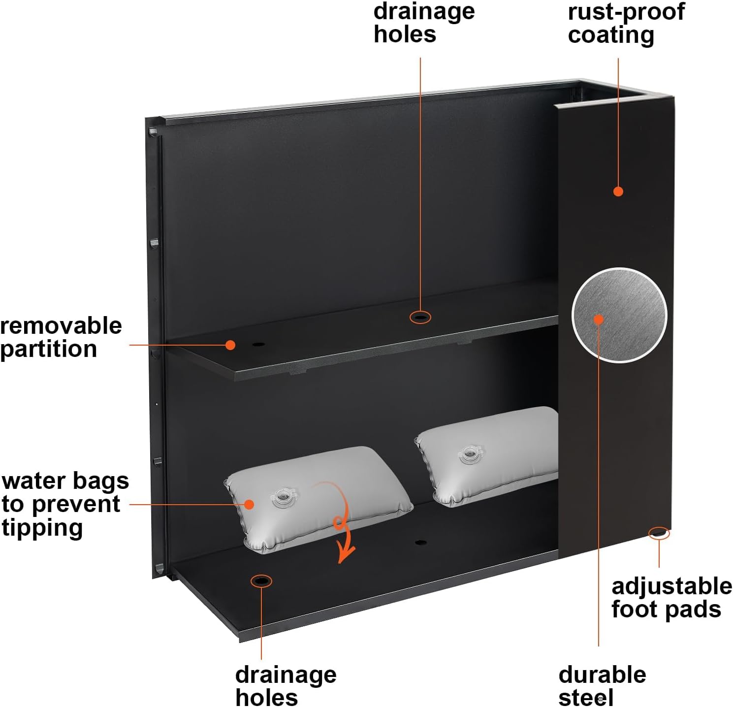 • Anti-Tipping Stability: Our flower box comes with two included water bags to enhance stability by adding weight to the base and can withstand a maximum tilting force of 30bf. Perfect for when using lightweight decorations