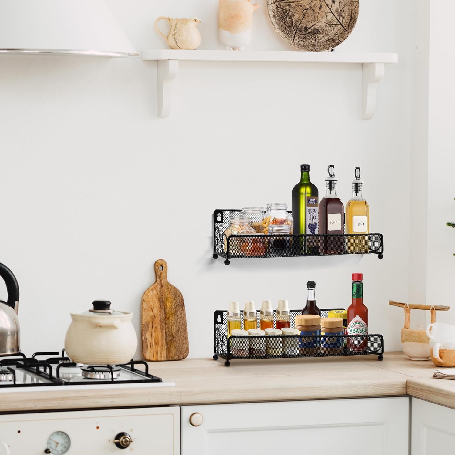 • Premium Metal Material and Stable Storage: The spice rack wall mounted is made of thickened high-strength carbon steel,is waterproof, rustproof, easy to clean.Our spice rack comes with additional 2.36-inch side guards and reinforced adhesive stickers to ensure safety and stability.