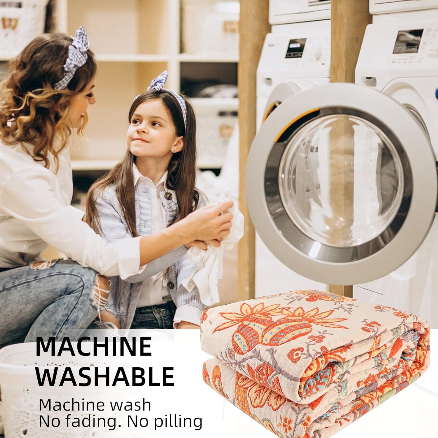 Boho Throw Blanket for Bed - 100% Pure Cotton Ultra Soft Rustic Quilt - Farmhouse Decor Bed Blankets, All Season Rustic Throw for Sofa Couch Chair(80''x 90'', Floral)