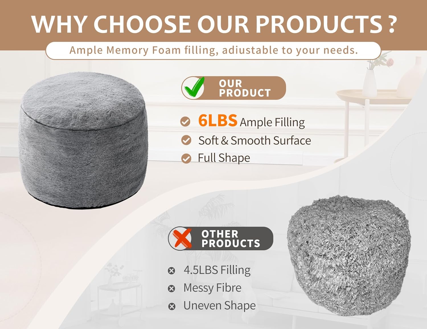 • Filling of Living Room Ottoman: The foot stool for couch are compression packed for ease of shipping, please pat, shake and knead the boho bean bag footstool's cushions after applying the plush cover and allow 48 to 72 hours for the grey foot rest to fully expand.
