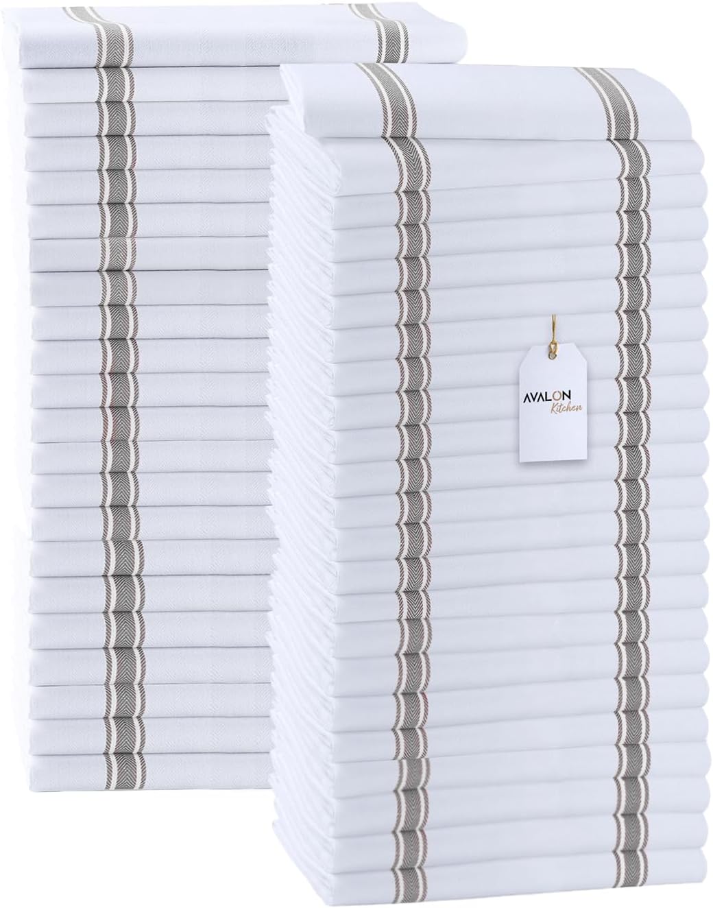 • SOFT AND ABSORBENT – These kitchen towels are made from 100% ring-spun cotton to assist with all your household and kitchen chores. The dish towels are carefully designed with a herringbone weave which gives a soft feel and absorbency to dry effectively.