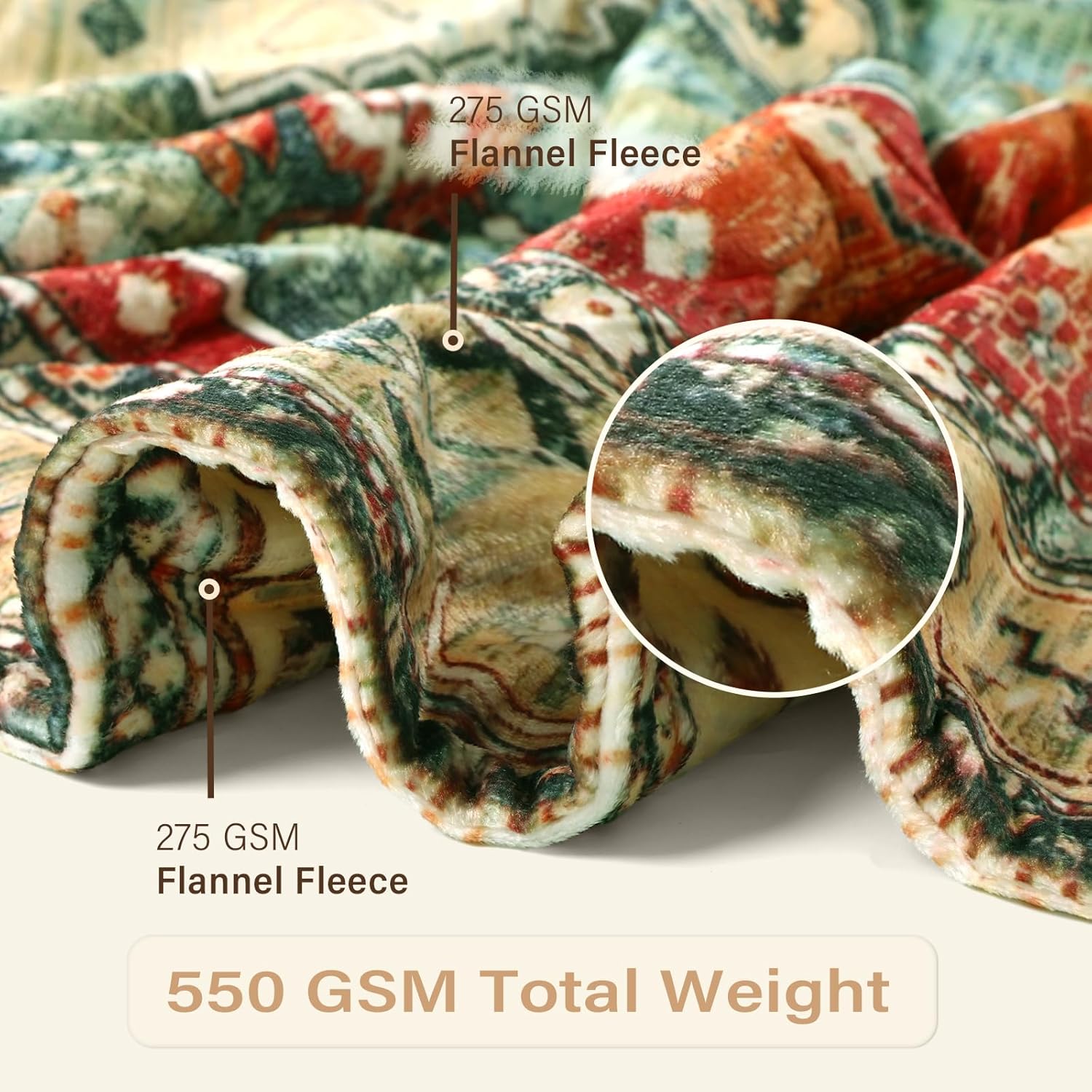 • [Plush Warmth Without Bulk] 550 GSM high-density weave, 2.4 lbs (50"x60"),delivers 30% warmer than standard fleece blankets, traps heat efficiently.Let you Stay toasty in cold nights or chilly living rooms